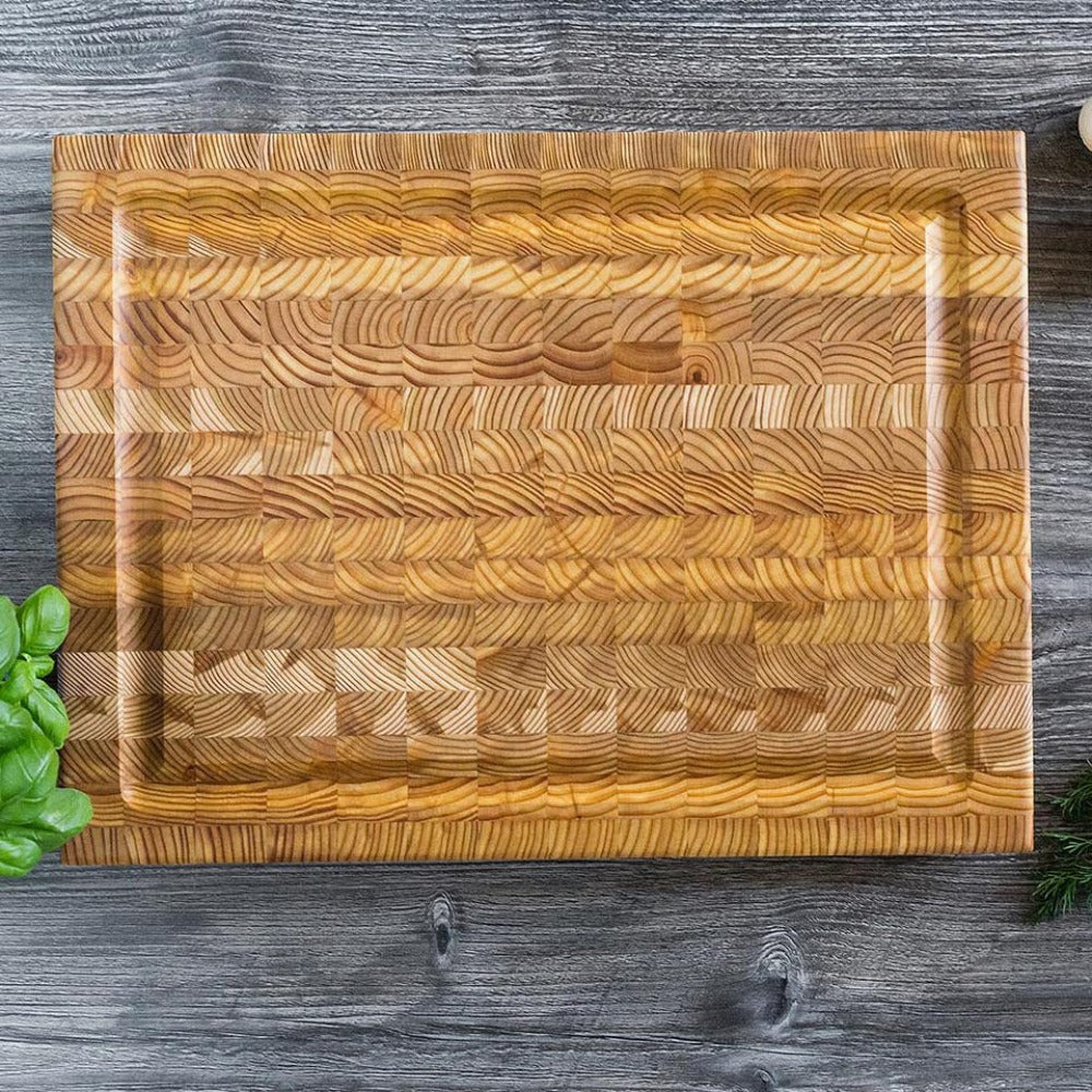 Every one-of-a-kind board they build is perfect for prep and presentation. The end-grain construction is the most ideal for the health of your knives and the amazing patterning in the larch wood finishing is stunning enough to be its own decor piece. and have your guests talking.
