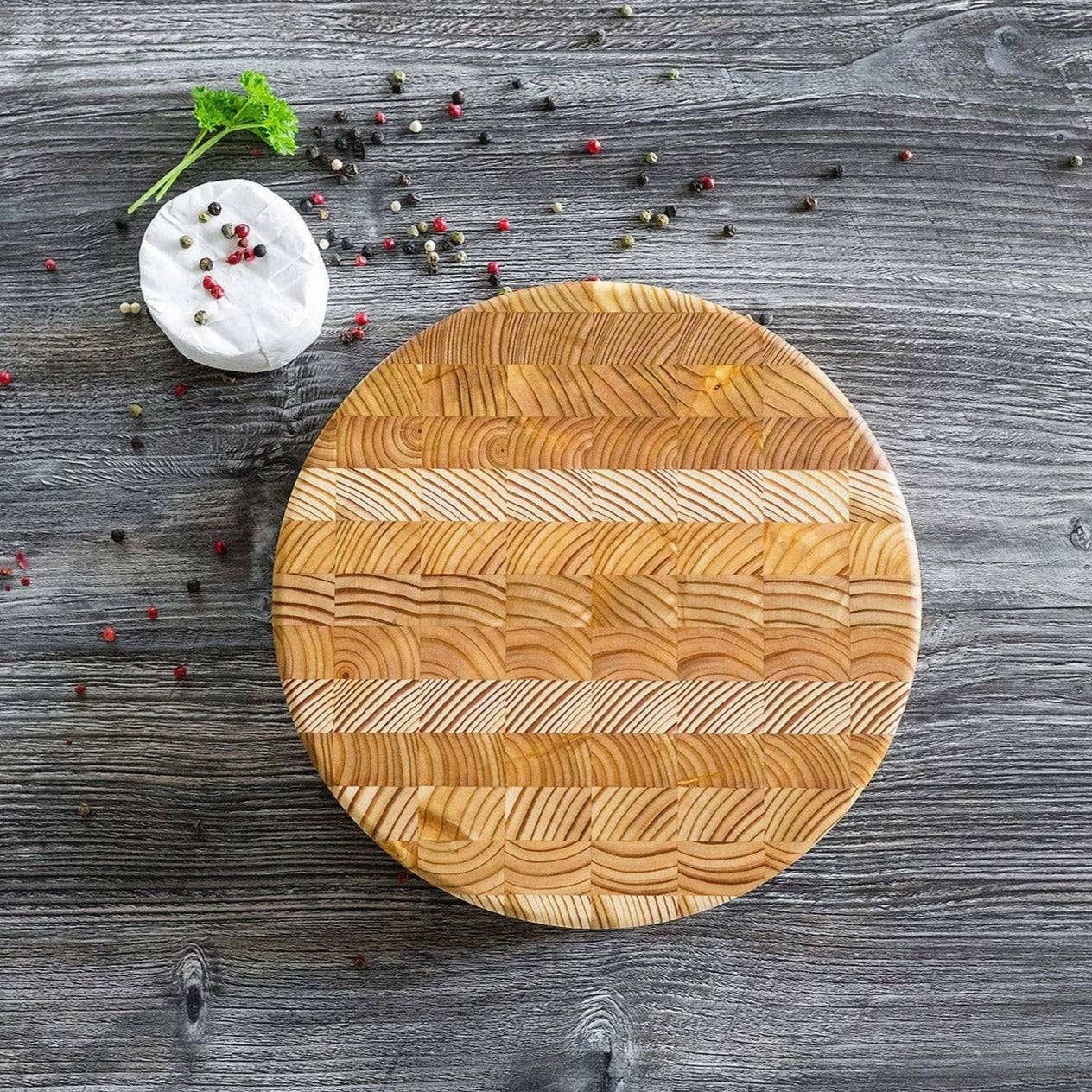 Just like every board from Larch Wood, these three cheese boards are definitely adequate for back of the house prep. But they really shine in presentation mode game time. Also like other Larch Wood boards, the boards have the indestructible soft rubbery feet for a non-slip experience. The 10” diameter round board is definitely the favorite of the group. Followed closely by the 9” square board - both coming in at 2” thick. This line also has a 1.5” thick double wide that is almost 18” long.