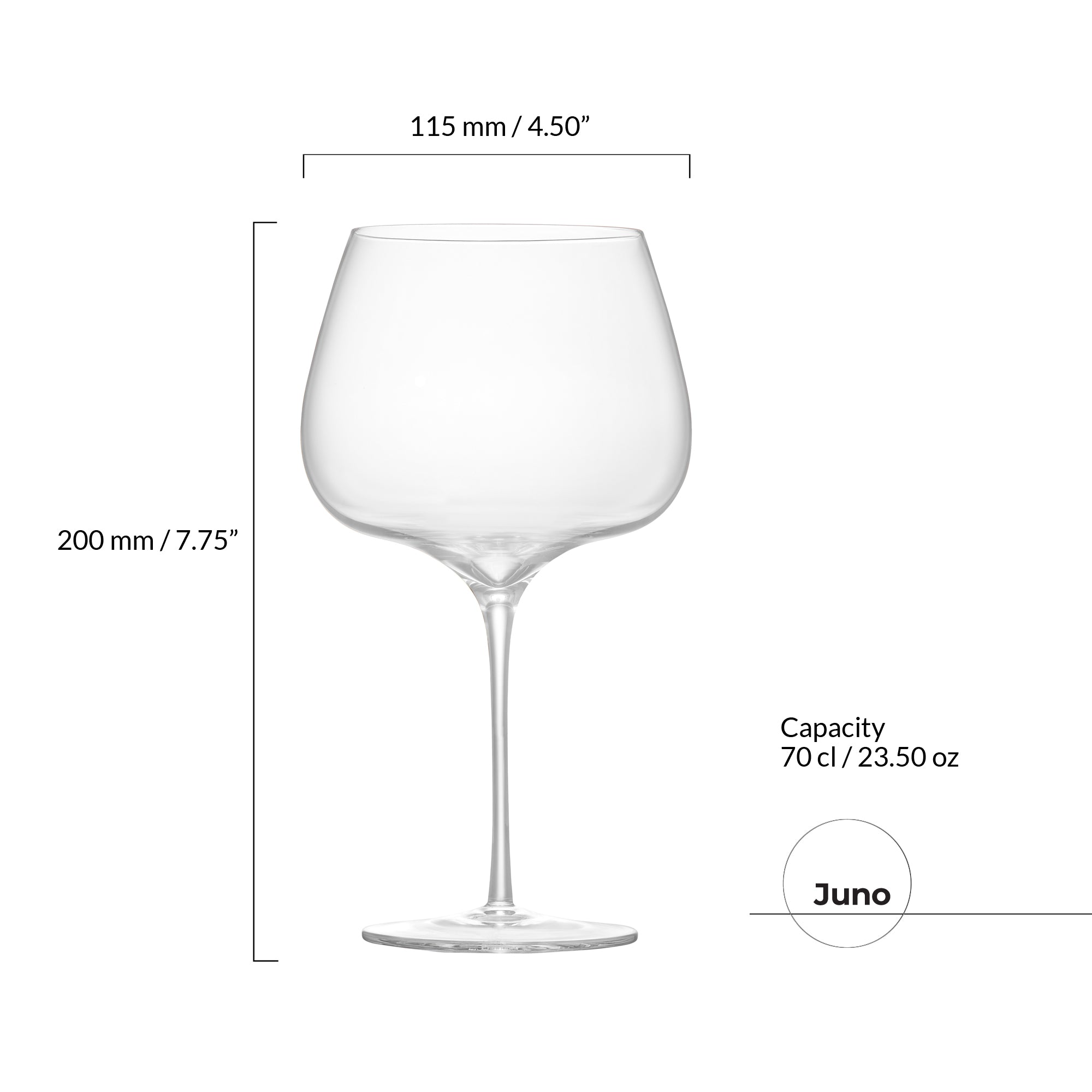 The Anton Studio Designs Set of 2 Juno Gin Glass brings a sense of quiet elegance to any setting. Each wine glass is mouth blown with a broad, gently curved bowl that tapers to a refined rim its silhouette both modern and familiar. The pulled stem, crafted directly from the bowl, forms a delicate teardrop dimple that adds a touch of artistry to the glass.