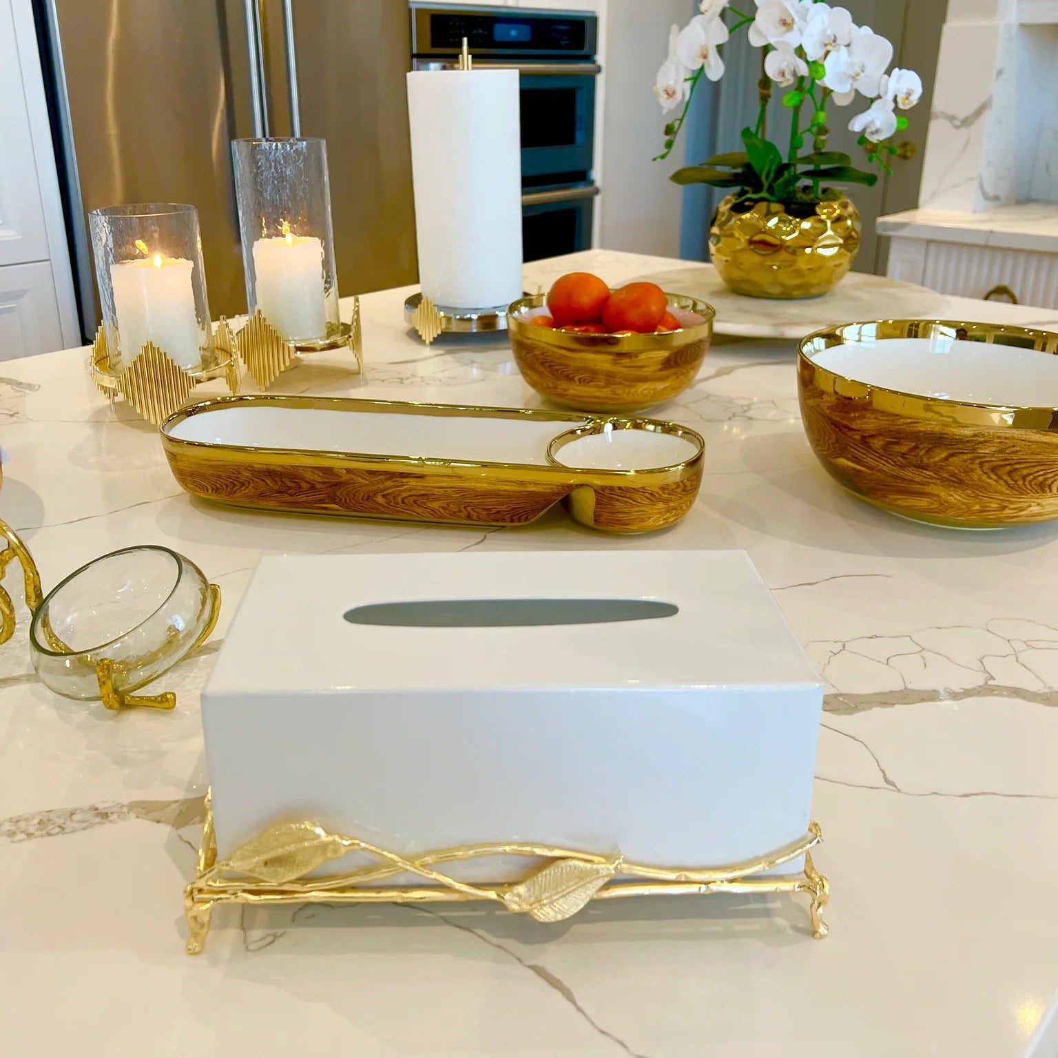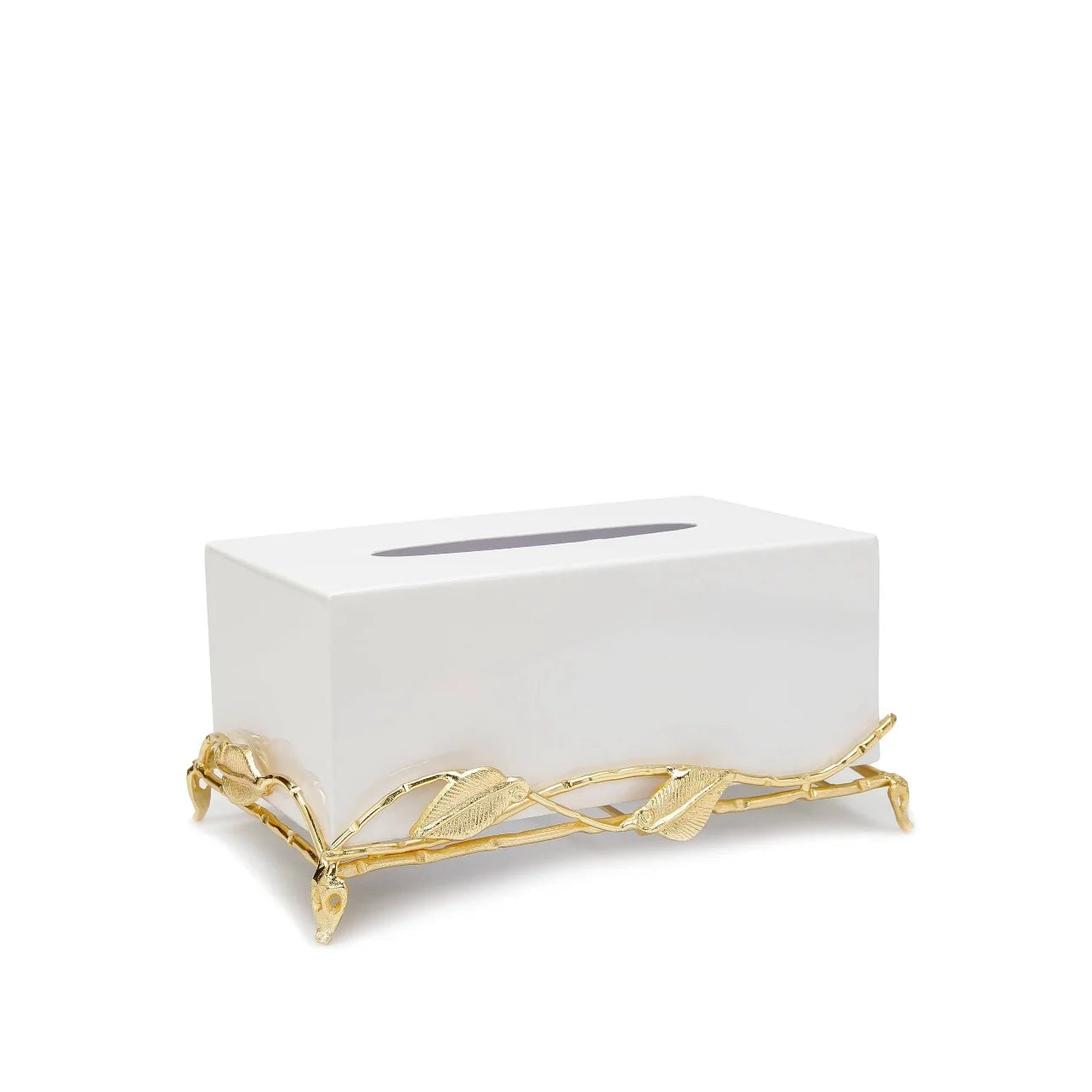 Classic Touch White Tissue Box on Gold Leaf Design Base