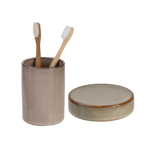 The Moda At Home Aaron Ceramic Tumbler and Soap Dish brings timeless elegance and natural warmth to your space. Crafted from durable ceramic with an earth-tone reactive glaze, each piece blends organic charm with lasting functionality. The tumbler offers a versatile way to hold essentials, while the soap dish provides a stylish, practical home for daily necessities.