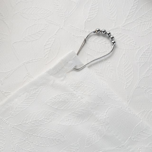 Indulge in the elegance of this Moda At Home Birch White Fabric Shower Curtain, featuring a delicate leaf pattern that adds subtle sophistication to any space. Its timeless design brings a serene and refined ambiance to the room, enhancing natural light while maintaining privacy.