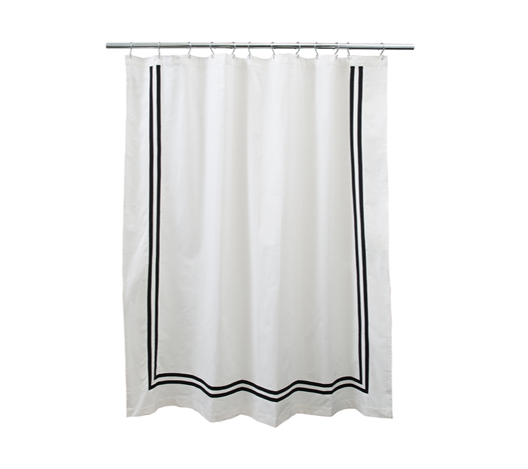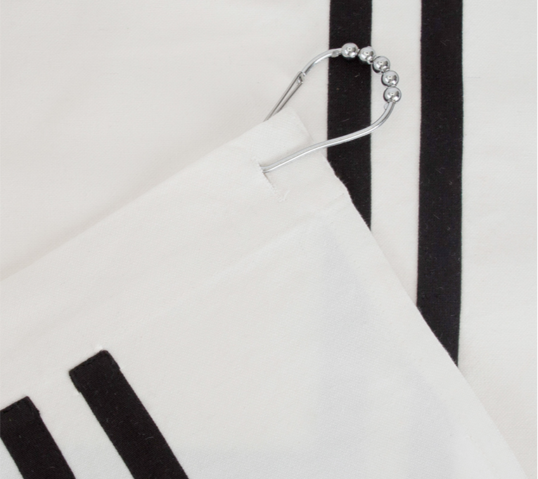This Moda At Home Border White and Black Cotton Shower Curtain combines the strength of polyester with the soft, refined touch of cotton for lasting durability and effortless style. Its contemporary design offers a clean, modern look that complements a wide range of bathroom décors, making it a versatile and elegant choice for everyday use. Machine washable. 71"W x 71"H.