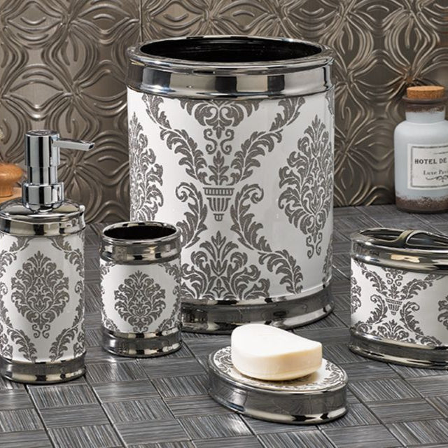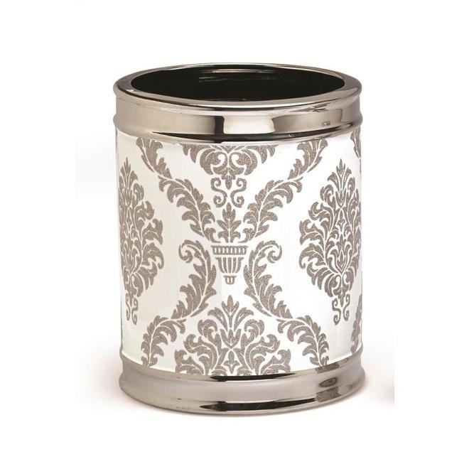 Moda At Home Damask White and Silver Ceramic Waste Bin