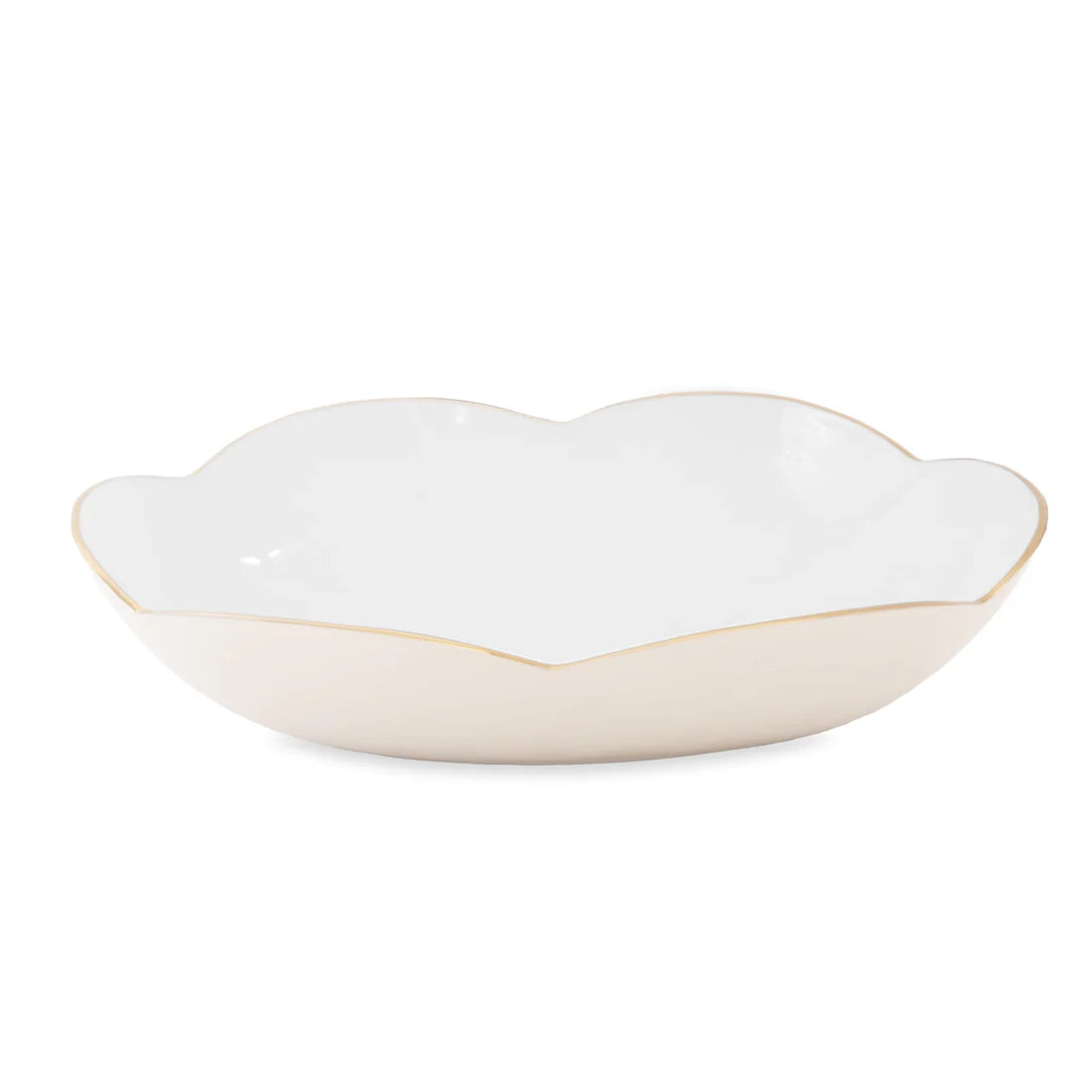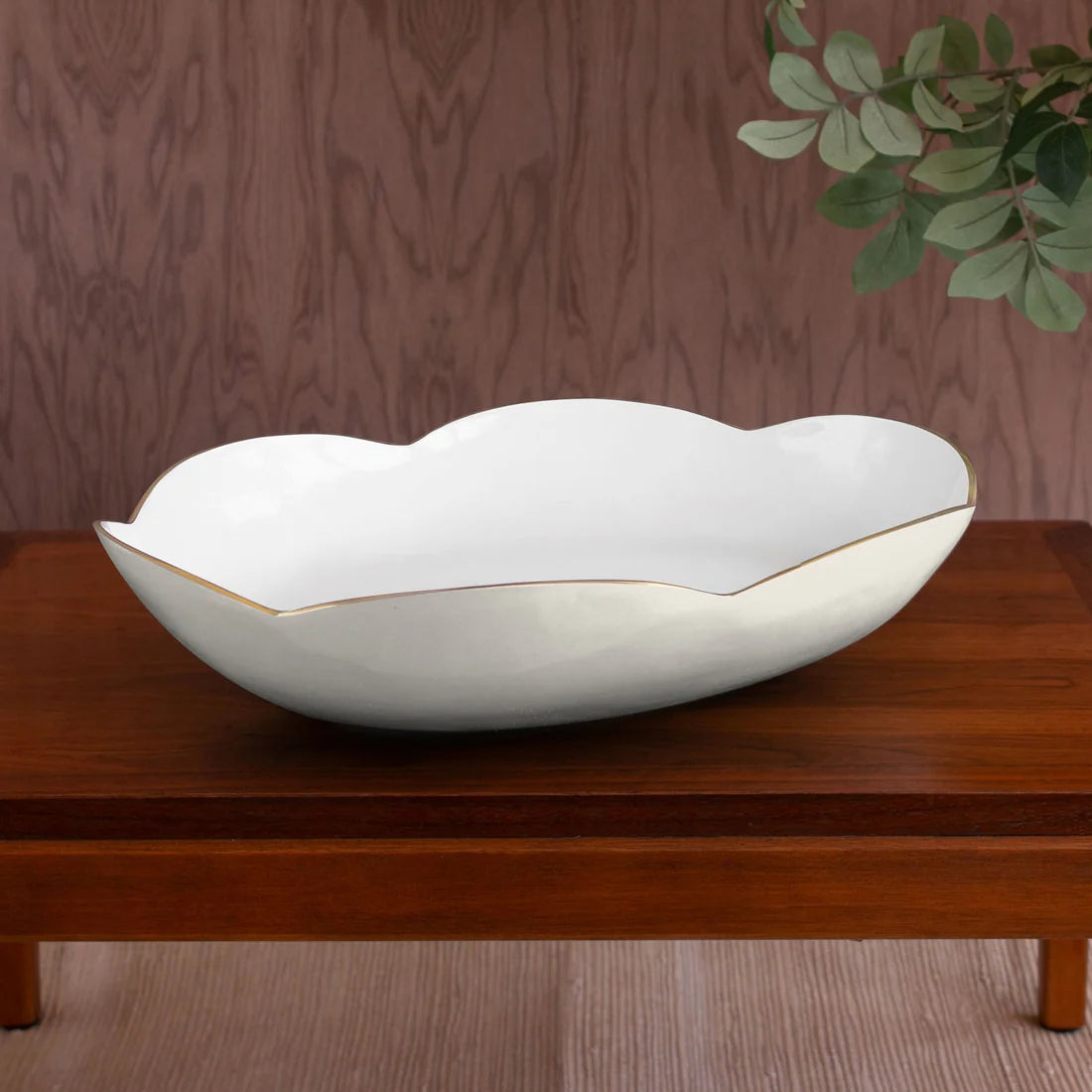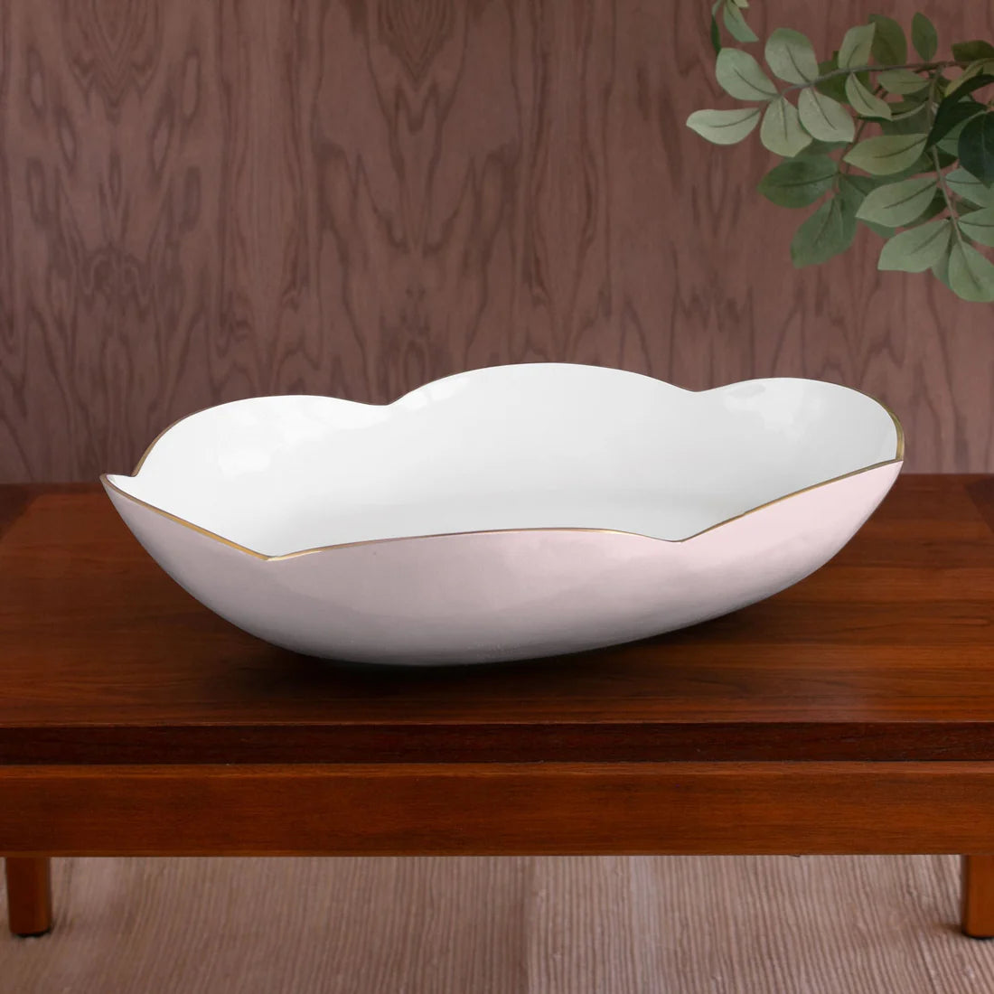 The Beatriz Ball Encanto Amelia Extra Large Oval Bowl makes a striking statement with its dramatic fluted design and luminous two-tone enamel finish rimmed in gold. Handcrafted from eco-friendly aluminum alloy with a food-safe enamel, it’s ideal for serving salads, fruit, or as an elegant decorative centerpiece.