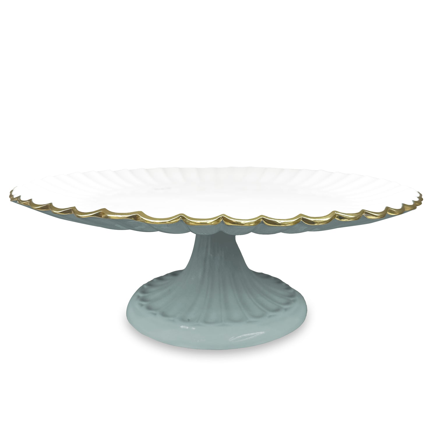 The Beatriz Ball New Orleans Encanto Vienna Pedestal Cake Plate blends vintage charm with modern elegance, featuring a fluted design, a gold-rimmed edge, and a rich two-tone enameled finish. Elevated on a sculptural base, it brings sophistication to cakes, desserts, or special presentations.
