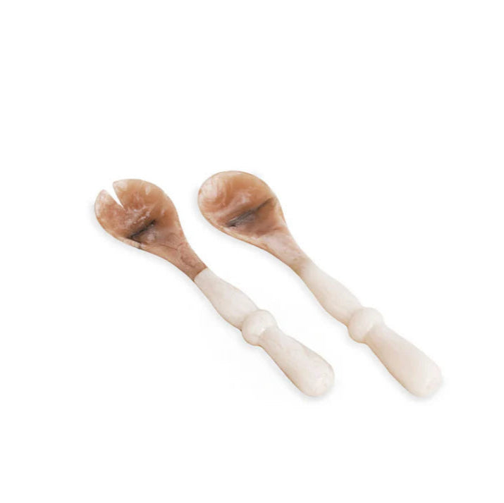 Beatriz Ball Resin Alabaster White Swirl Salad Servers