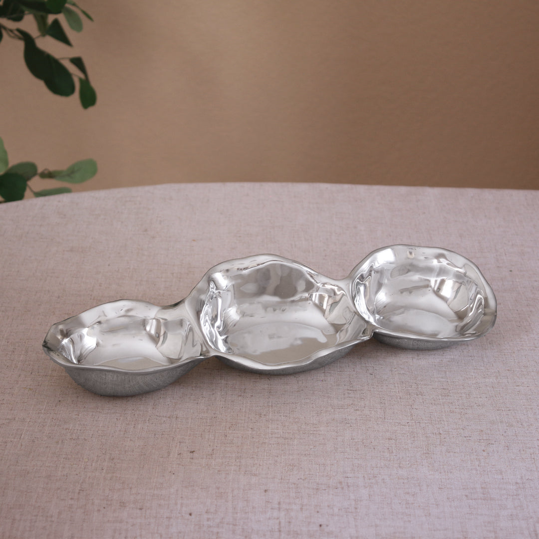 You'll find a thousand uses for the three-in-one Beatriz Ball Soho Triple Dip. Great for the home bar, it's perfect for dips, tapas, or garnishes. Use it to serve nuts, olives, and nibbles at your next party. An original Beatriz Ball design, sustainably handmade from top-quality, easy-care, food-safe aluminum alloy.