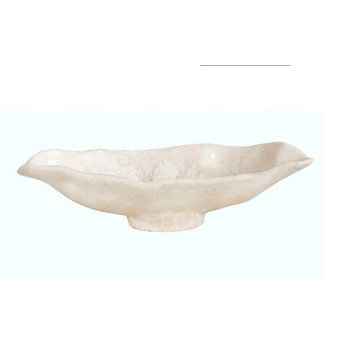 Beatriz Ball Resin Alabaster White Swirl Oval Bowl