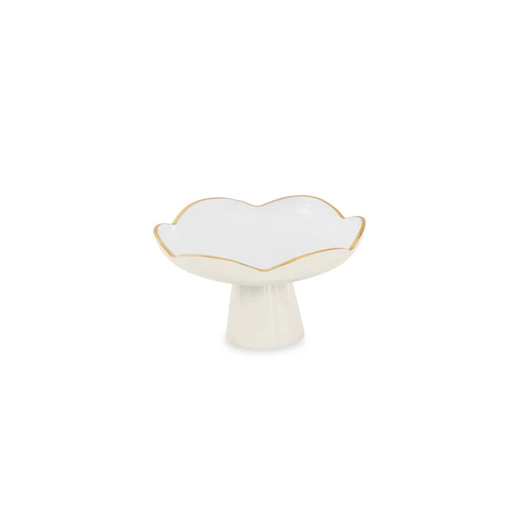 The Beatriz Ball Encanto Amelia Small Pedestal combines sculptural beauty with functional design. Handcrafted from eco-friendly aluminum alloy and finished with a food-safe enamel, it features elegant fluting, a rich two-tone finish, and refined gold-tone accents. Perfect for serving mini desserts or snacks, this charming piece adds sophistication to any table setting.