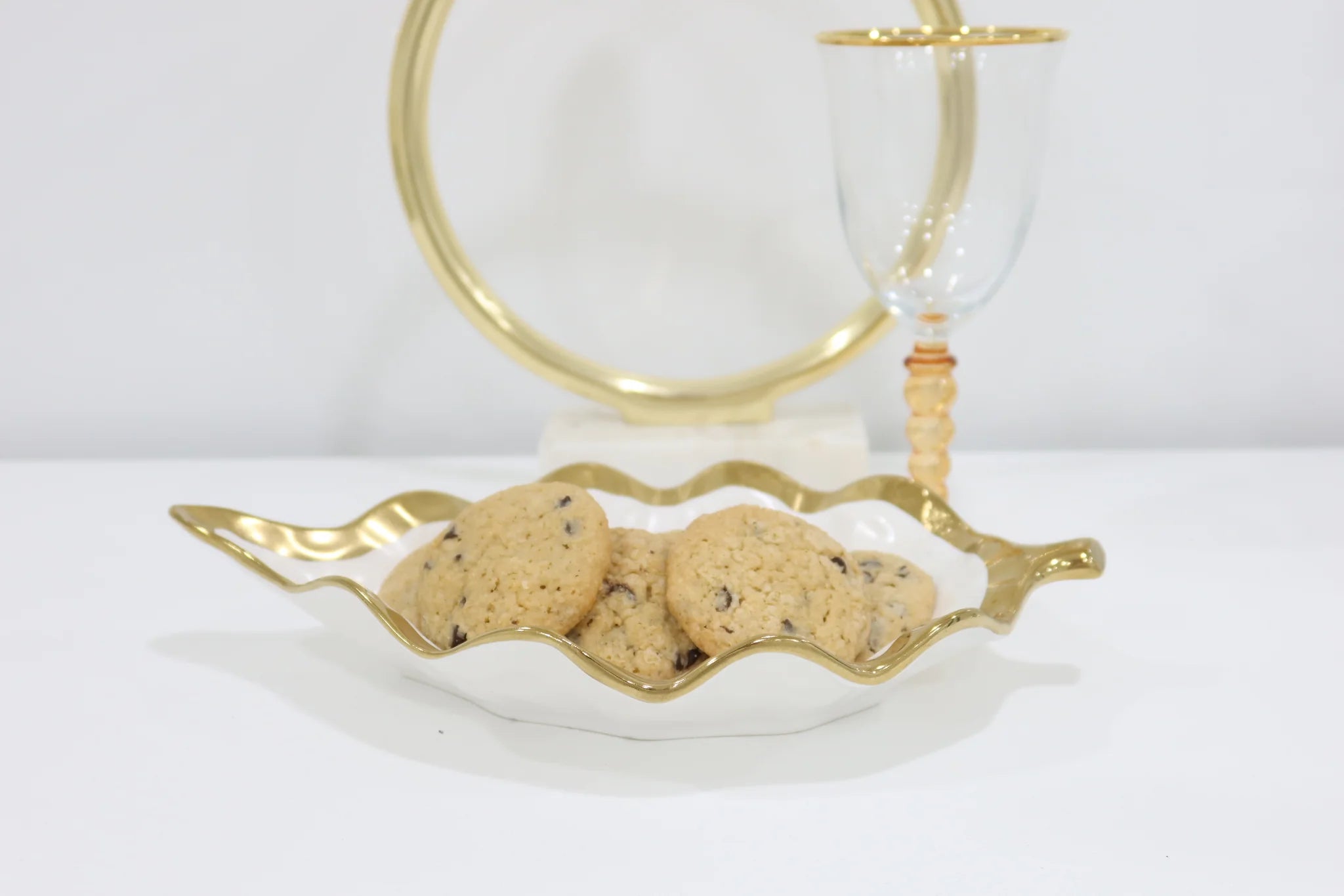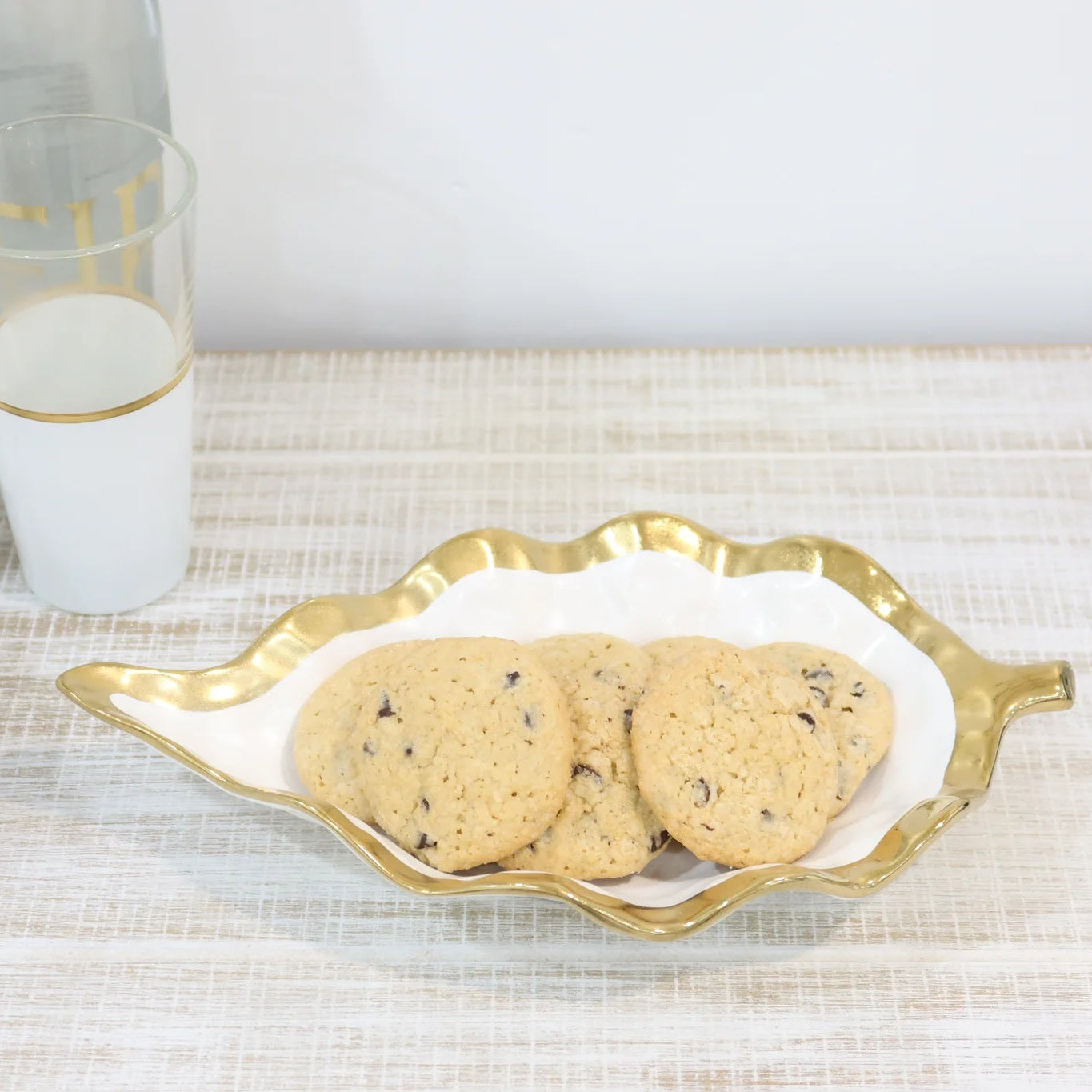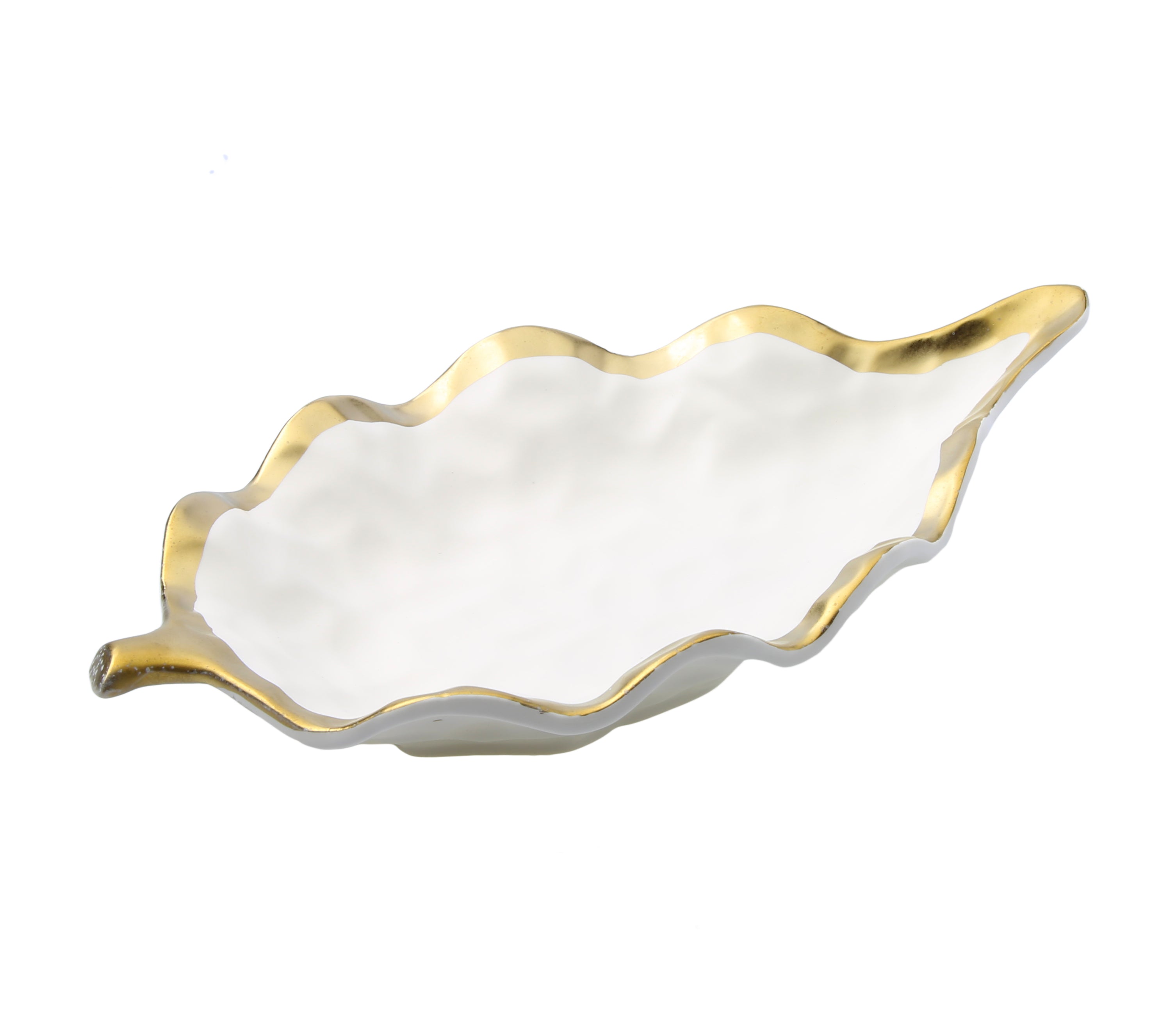Classic Touch White Porcelain Leaf Dish Bowl with Gold Rim