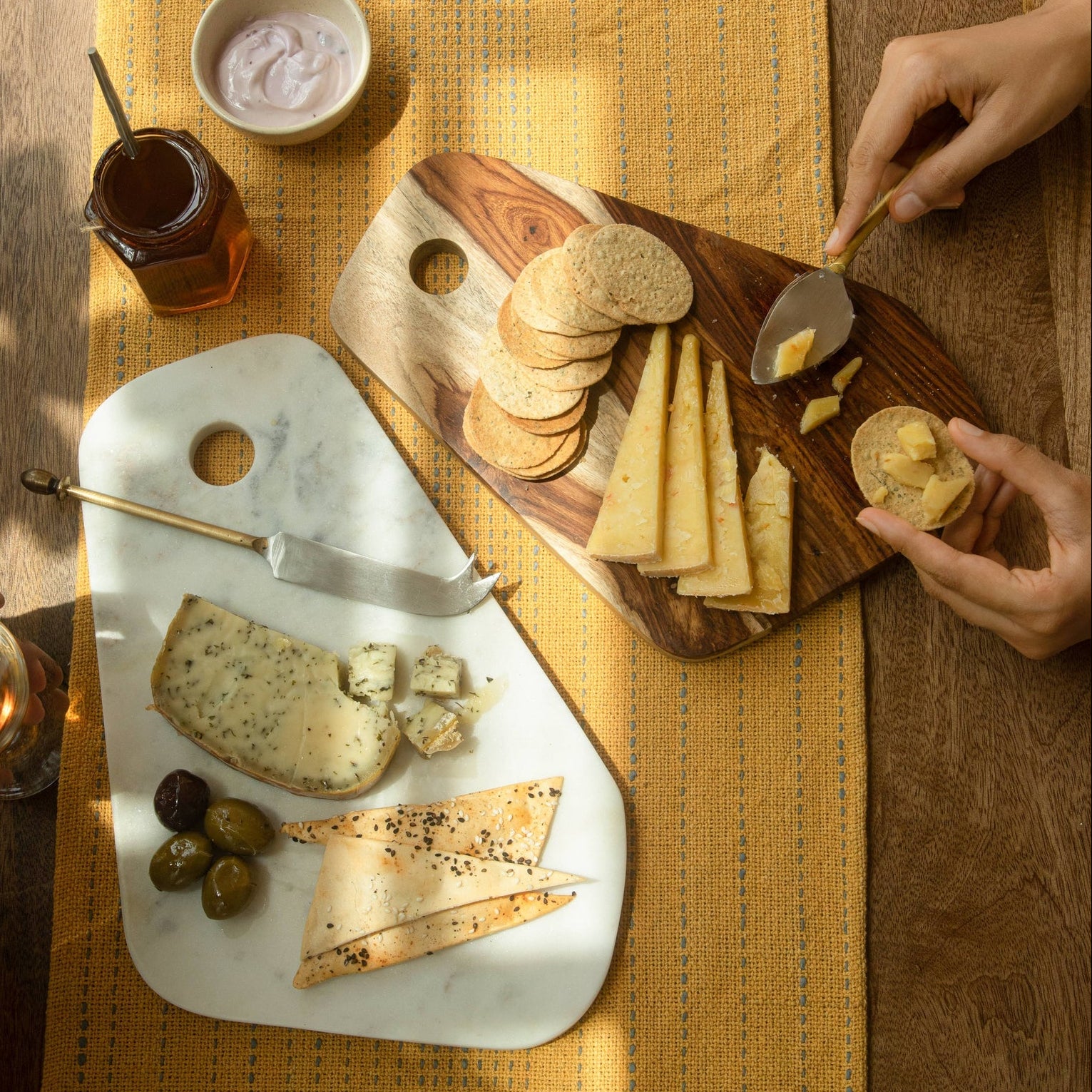 Handcrafted for both beauty and durability, this Mela Artisans Duo Wood and Marble Chopping Board combines smooth marble with richly grained acacia wood for a timeless, textural appeal. The asymmetrical silhouettes create visual interest, making each piece a striking addition to any kitchen or serving display.