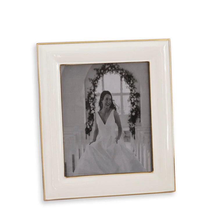 The Beatriz Ball Encanto Charlotte Enamel Frame captures timeless sophistication with its soft enamel finish and classic beaded border. Handcrafted from eco-friendly aluminum alloy using a traditional sand-casting process, it beautifully showcases an 8 x 10 photo in either vertical or horizontal orientation. A refined accent for any space and a thoughtful gift for weddings, anniversaries, or graduations.