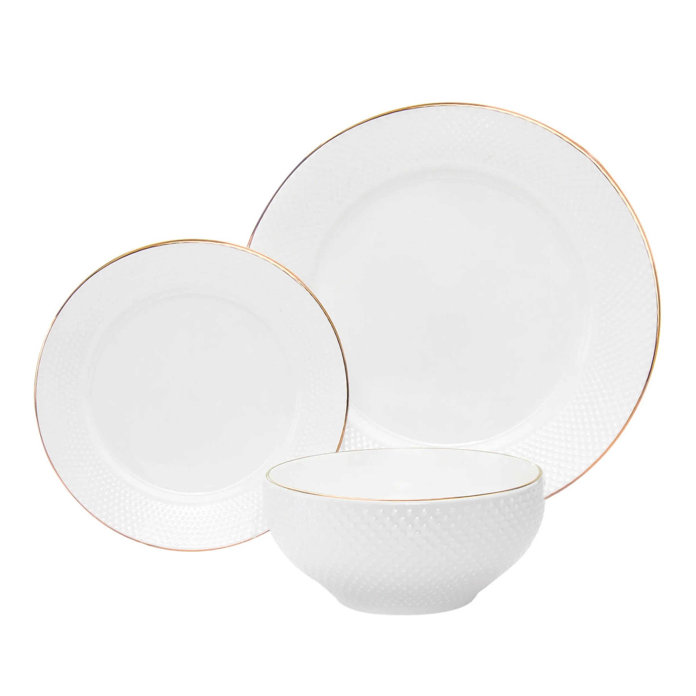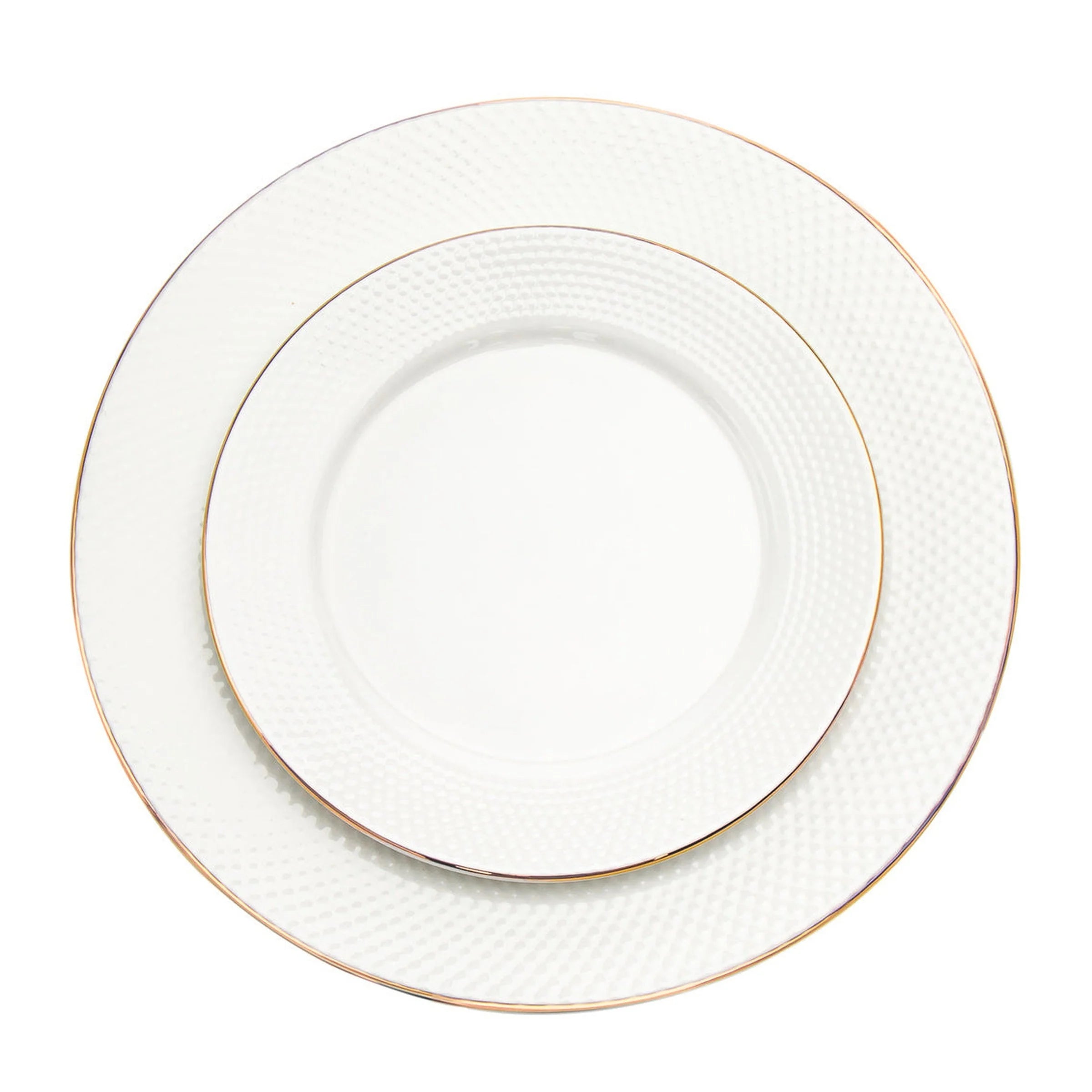 Elevate every meal with this Godinger Pique Gold Rim Porcelain 18-Piece Dinnerware Set, featuring raised hobnail texturing and a refined gold rim that brings timeless elegance to the table. Designed for both everyday dining and special occasions, each piece balances beauty and function with enduring style.