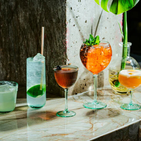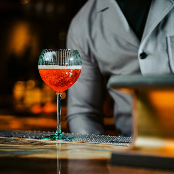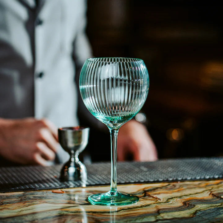The Legend Eco Hawthorne 20 oz. Gin & Tonic, Set of 6, brings sustainable sophistication to every occasion. Handmade from recycled glass with a sheer rim, each piece showcases unique colored optics that elevate the presentation of any drink.