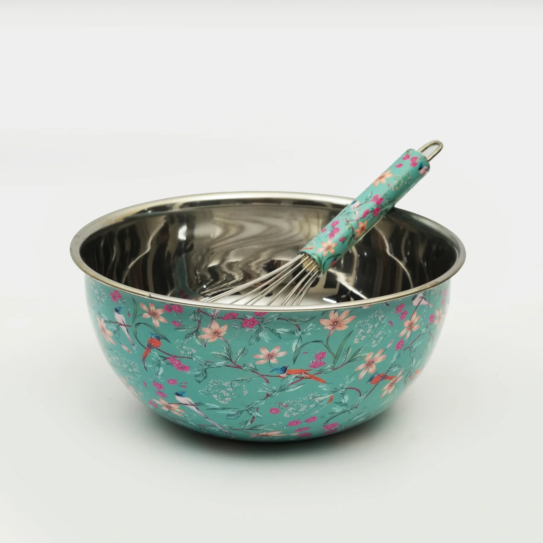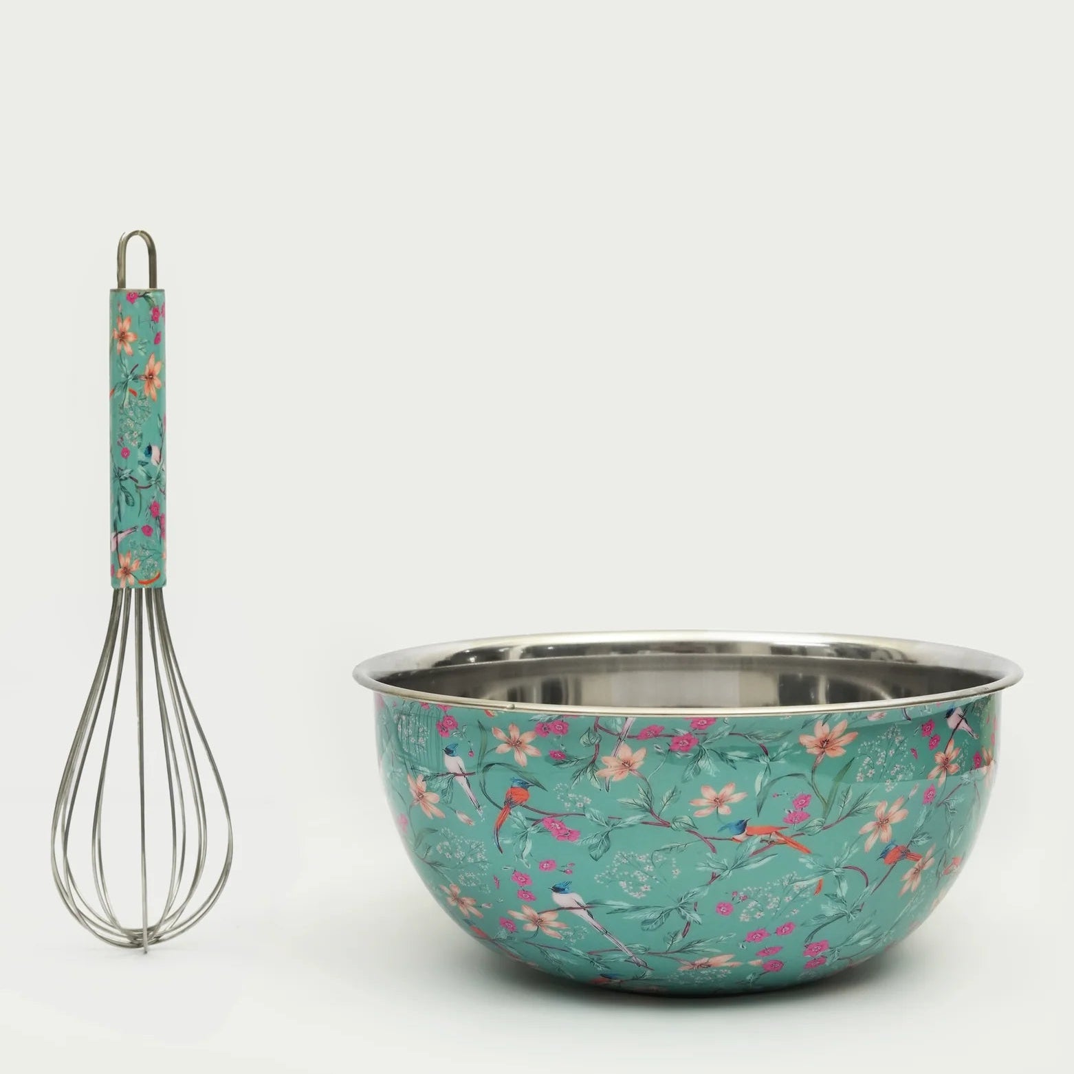Mela Artisans Aqua Flora Bowl and Whisk Set