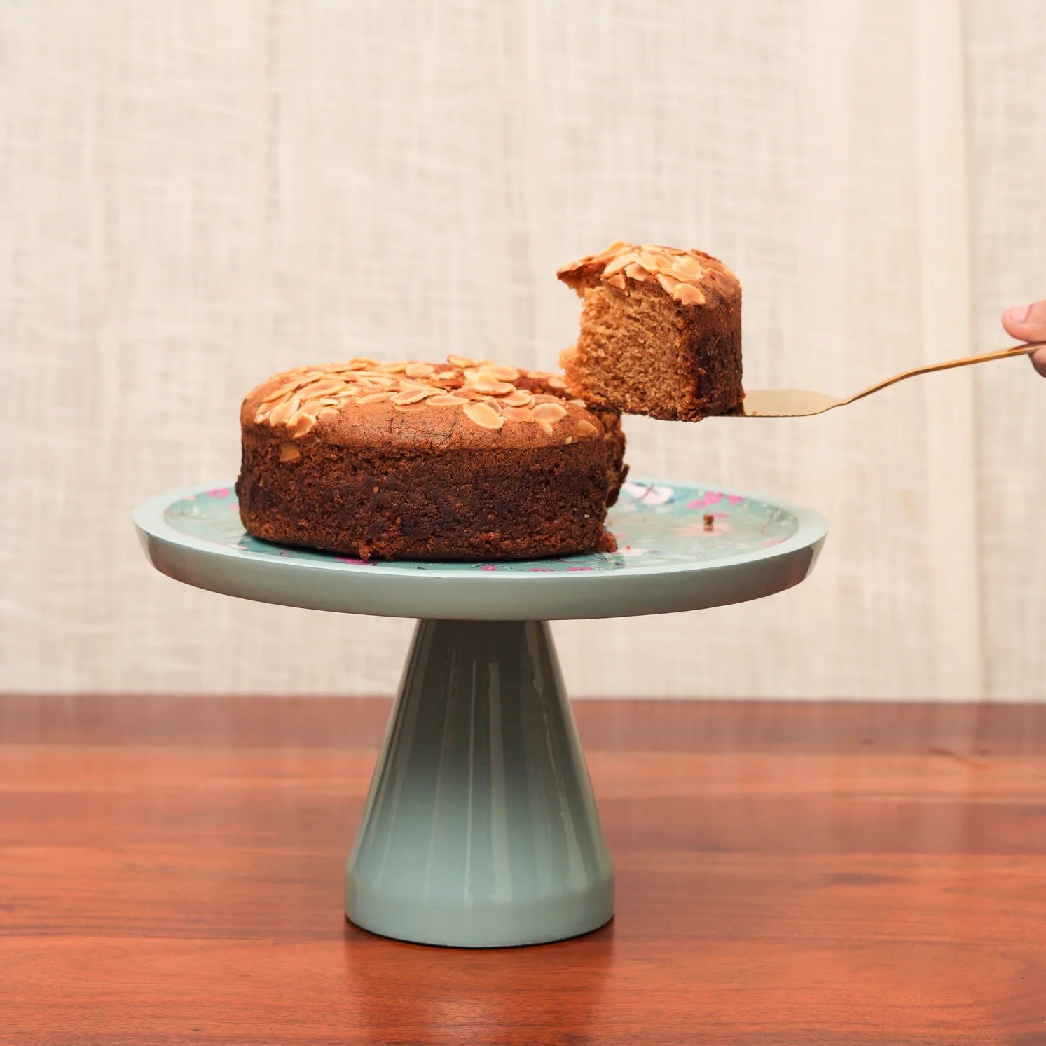 Like a brushstroke of serenity, the Mela Artisans Aqua Flora Pedestal Cake Stand brings artistic elegance to your table. The vivid aqua enamel top, adorned with delicate florals, rests on a hand-turned mango wood base that celebrates natural craftsmanship. It’s perfect for presenting cakes, pastries, cheeses, or decorative centerpieces.