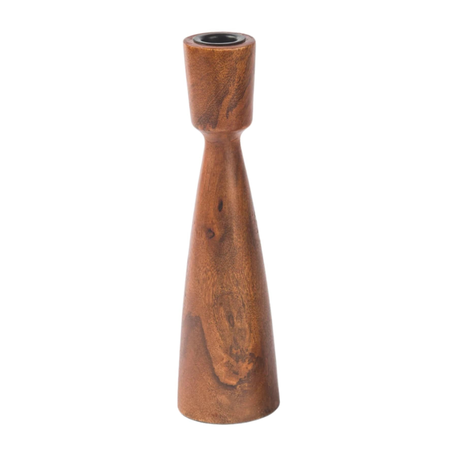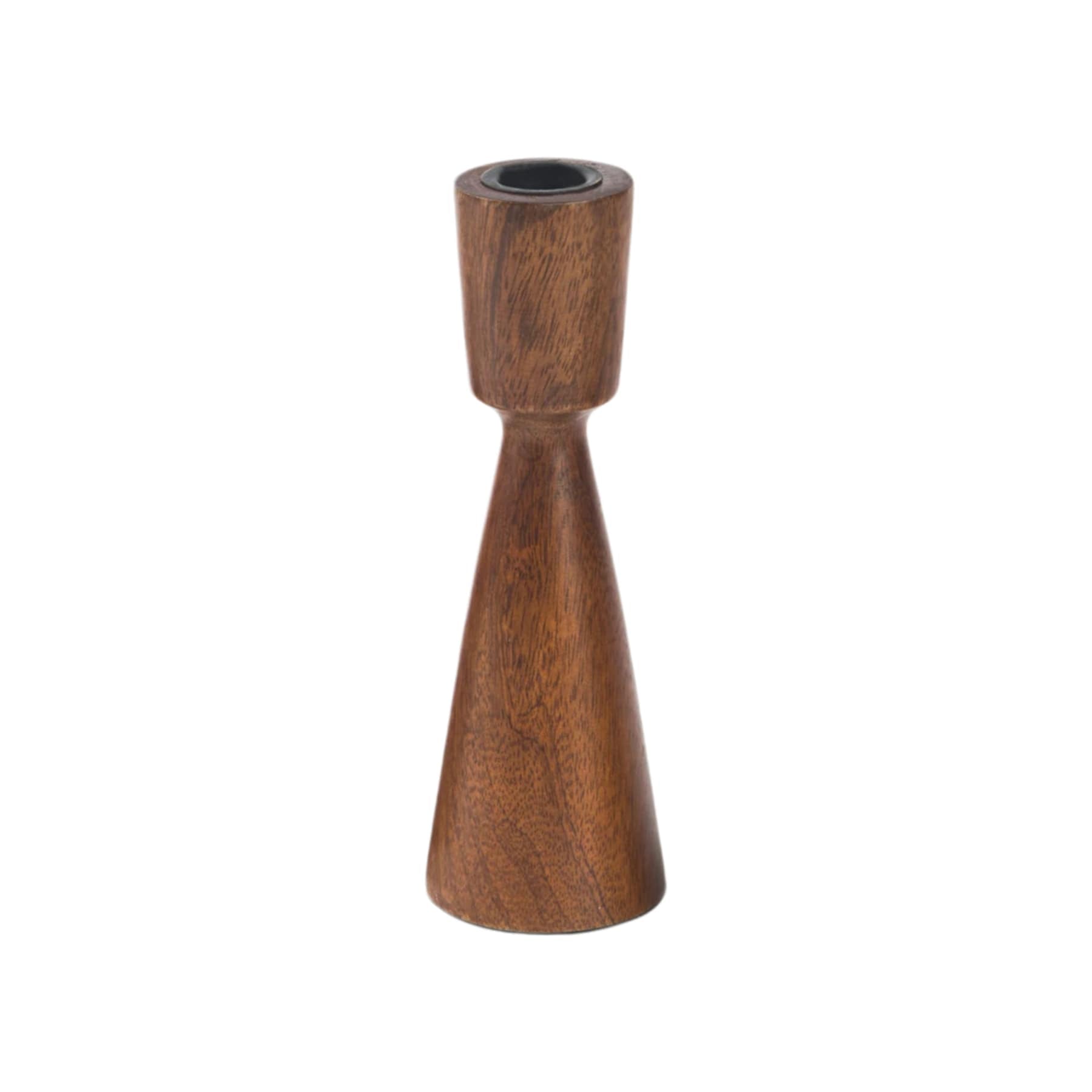 Bring warmth and elegance to any space with the Mela Artisans Hearth Taper Candlestick. Crafted from rich mango wood, their graceful silhouettes and natural tones create a cozy, inviting ambiance. Perfect for dining tables, mantels, or living spaces, this candlestick creates a striking staggered arrangement. Wipe clean with a soft, dry cloth. Available in three sizes: Small 6"H, Medium 8"H and Large 10"H.