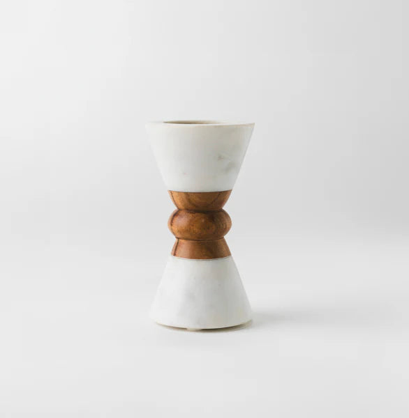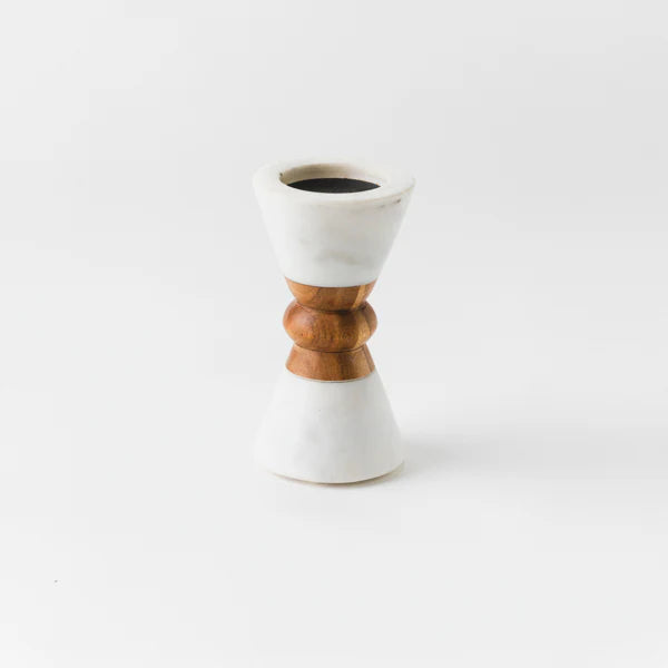 Mela Artisans Heirloom Marble & Acacia Candleholders