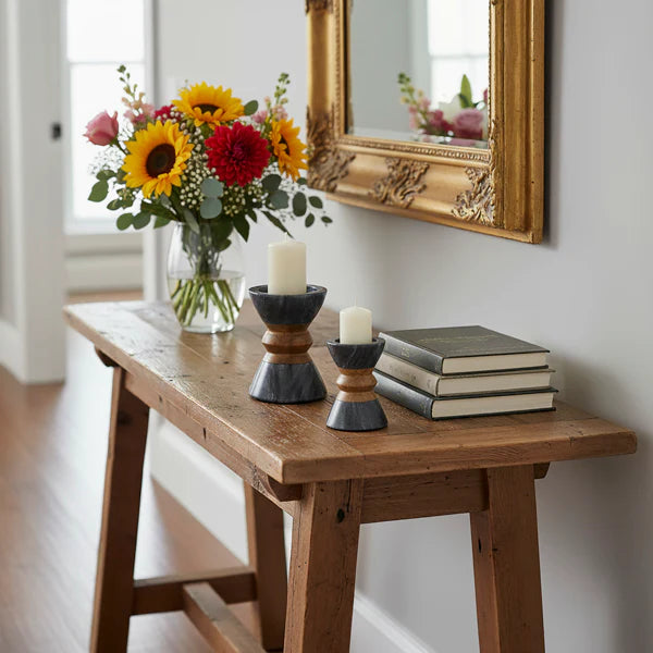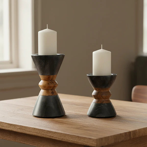 Mela Artisans Monarch Marble & Acacia Candleholders