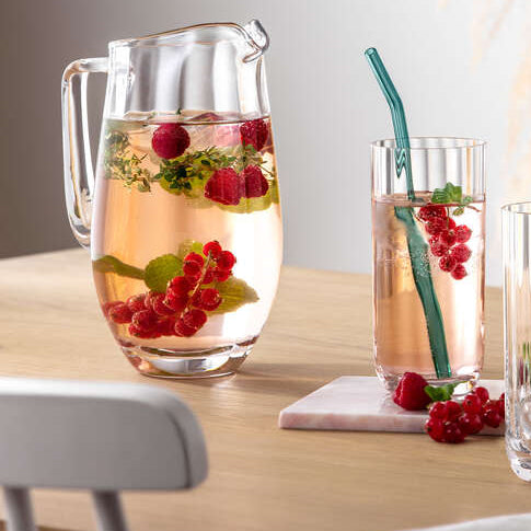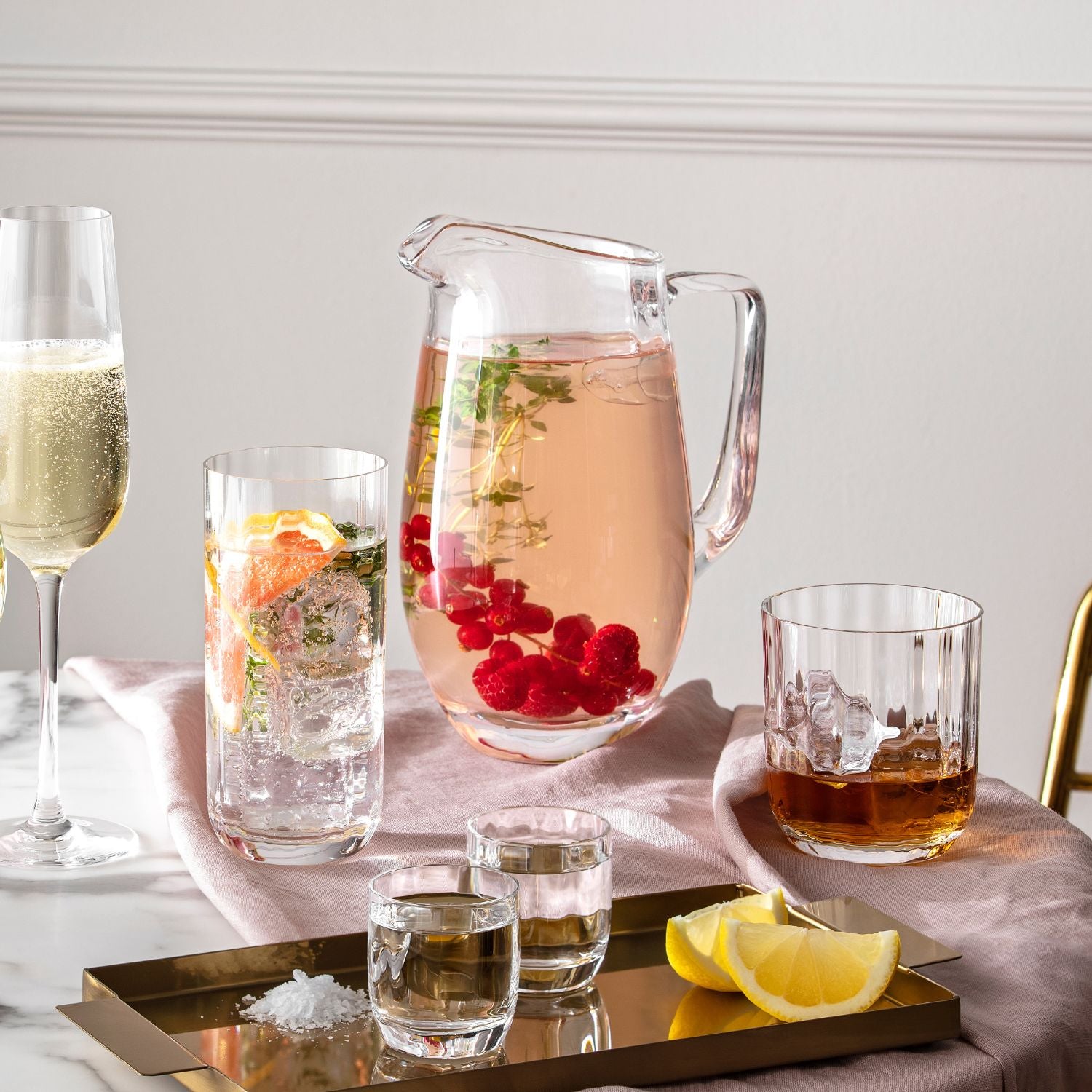 The Rose Garden crystal glass pitcher brings a touch of romance and elegance to any setting. Its graceful shape creates brilliant effects and refracts light beautifully, adding a high-quality atmosphere to the table. Designed for both beauty and functionality, the pitcher is robust, dishwasher-safe, and ideal for serving water, iced tea, or juice. With a capacity of 51 oz., it seamlessly complements the Rose Garden collection, adding a luxurious note to any drink. Discover this elegant piece from Villeroy & Boch.