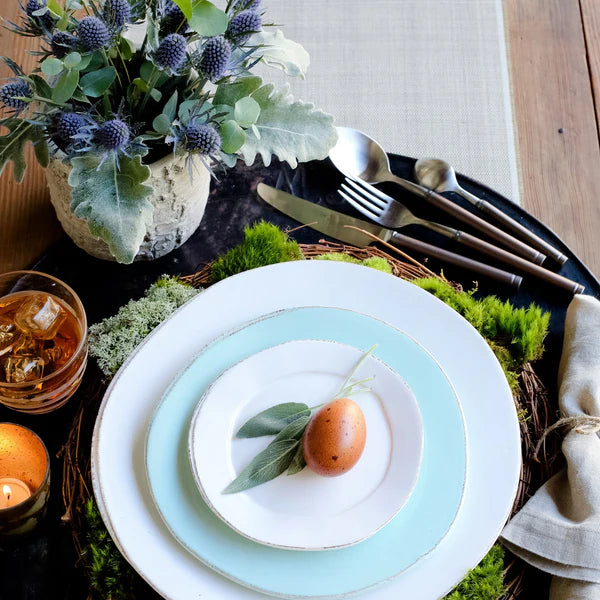 The perfect stoneware salad plate for small dishes, desserts, or appetizers, the Lastra Salad Plate combines rustic charm with sophisticated elegance. Inspired by an overlapping wooden mold used for centuries in traditional Italian cheesemaking, this plate showcases the unique craftsmanship and heritage of the Lastra collection.