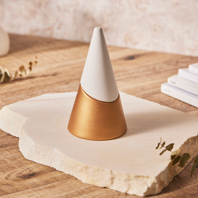 The ceramic base accommodates 5, 10, or 15ml essential oil bottles for versatile use. Over time, natural discoloration may occur, enhancing the character of this beautifully simple piece.