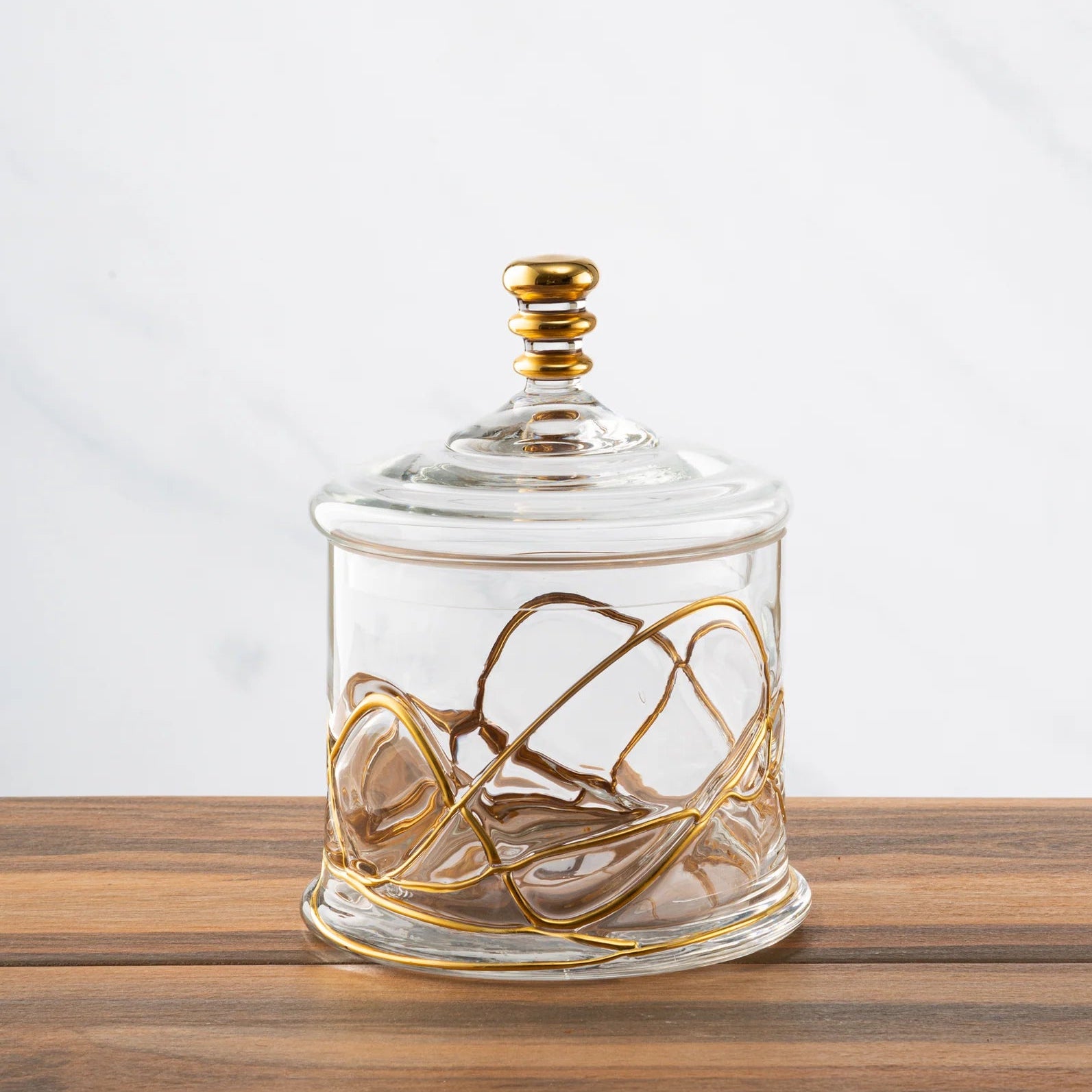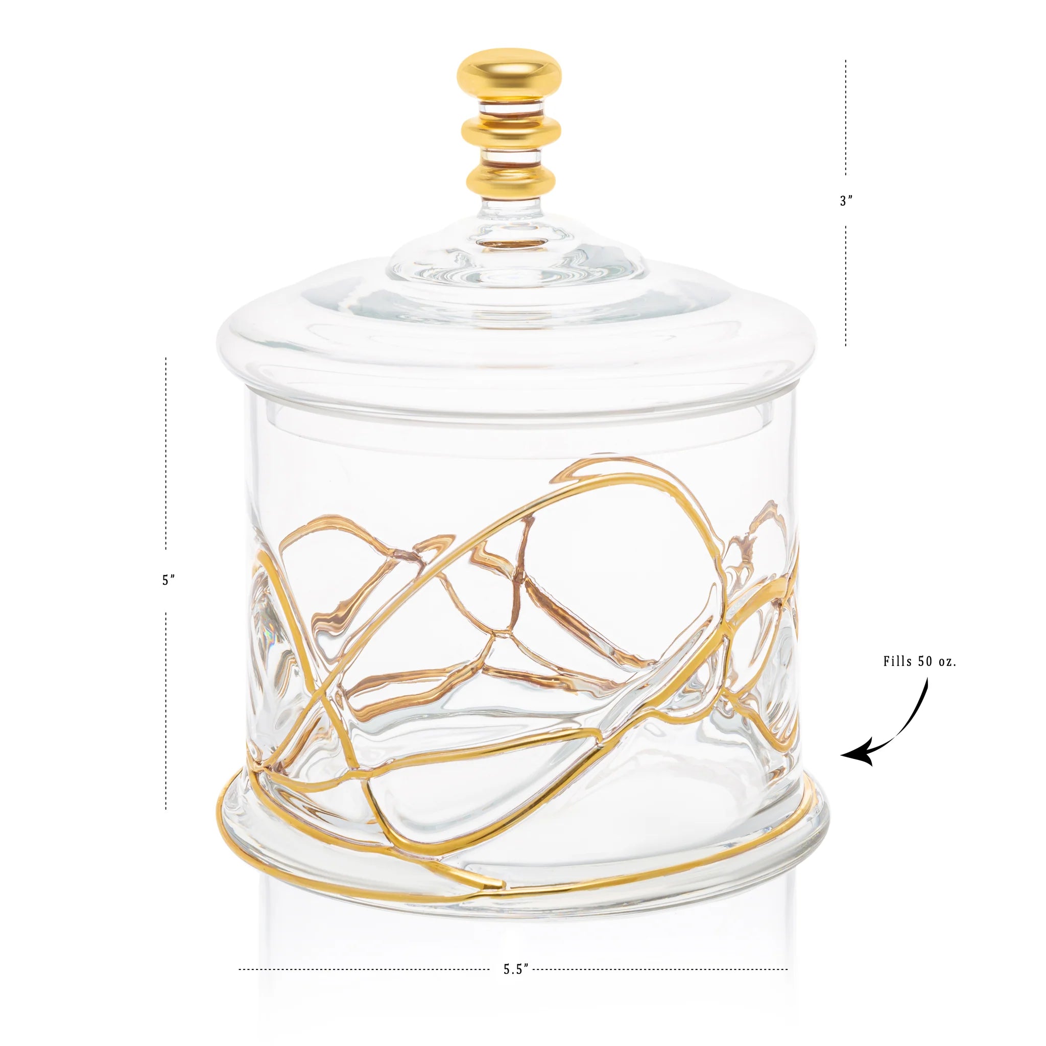Classic Touch 14k Gold Swirl Glass Jar with Lid