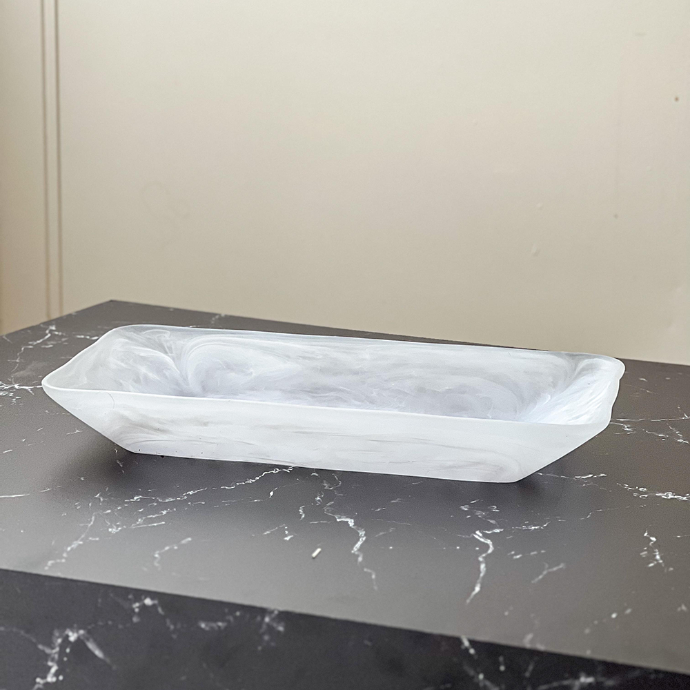 The Kinor Resin White Swirl Tray showcases a graceful white swirl pattern that elevates any table setting with subtle elegance. Crafted from durable resin, it is ideal for presenting cold or low-temperature dishes while offering a perfect balance of beauty and practicality.