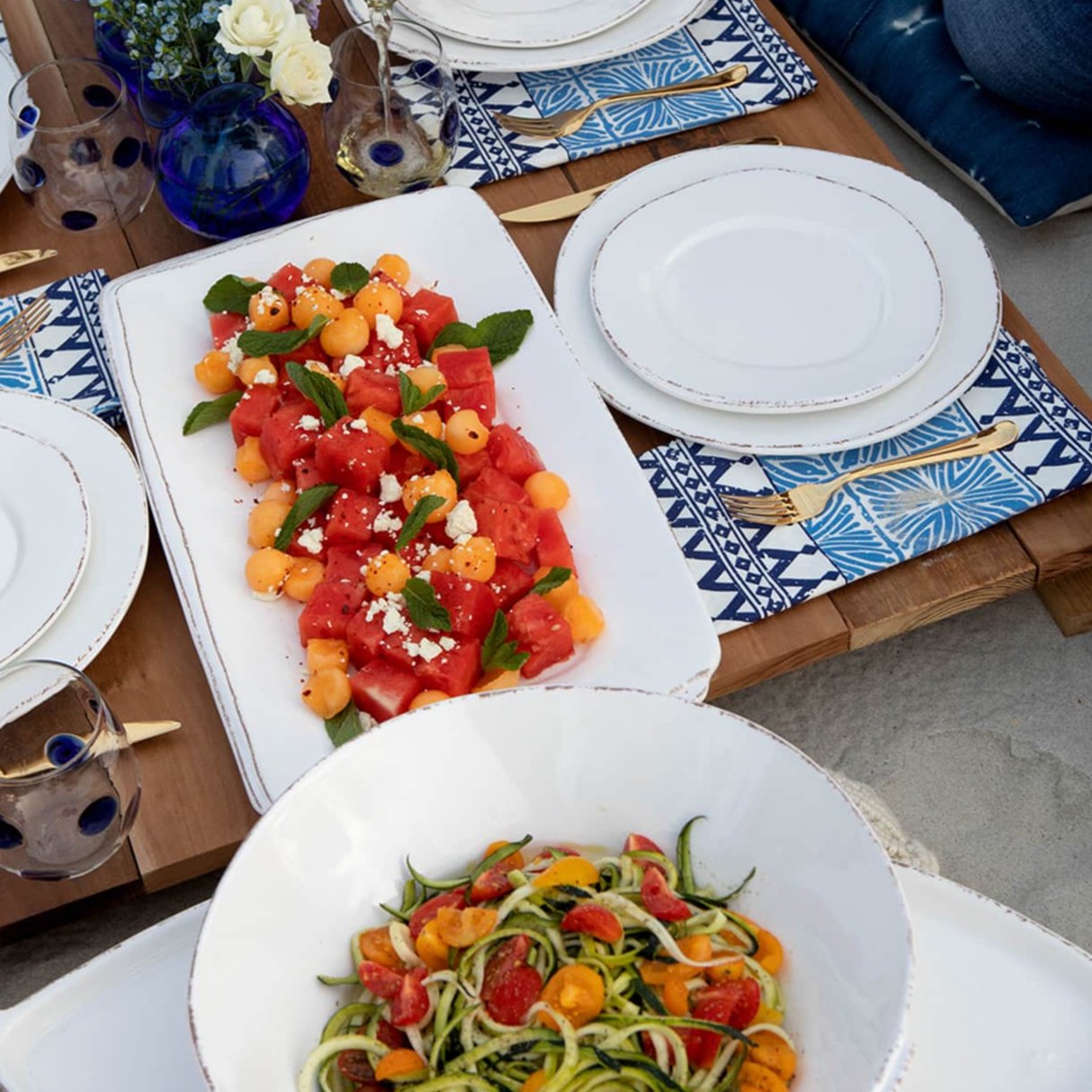 The Lastra White Small Rectangular Tray, with its bright white finish and subtle rustic accents, is ideal for serving olives, grapes, or an array of fresh fruit. Handcrafted of Italian stoneware, this piece adds a charming, refined touch to your table.