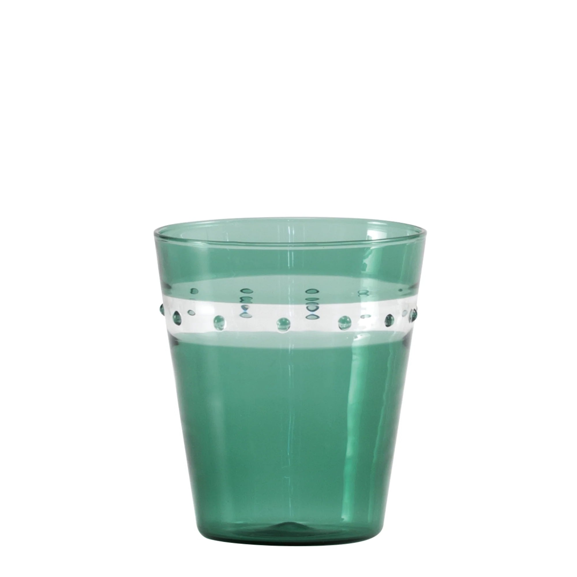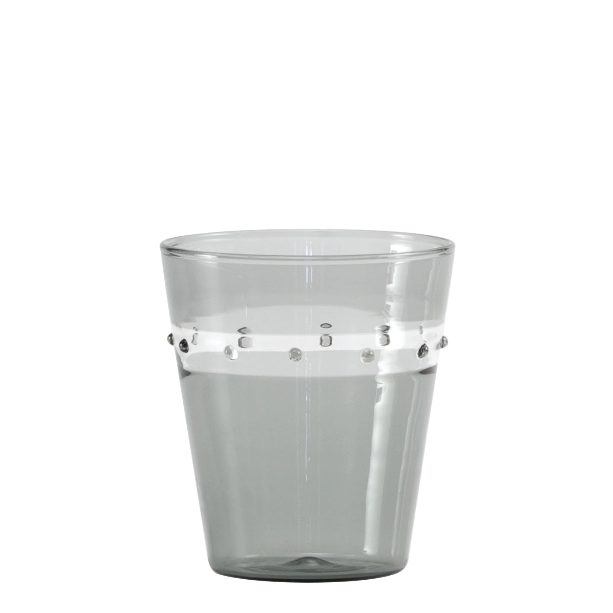 The Zafferano A Pallini Beverage Glass Set of 4 showcases the artistry of mouth-blown borosilicate glass. Each piece is created using the traditional incalmo technique of Murano, resulting in subtle variations that make every glass unique.