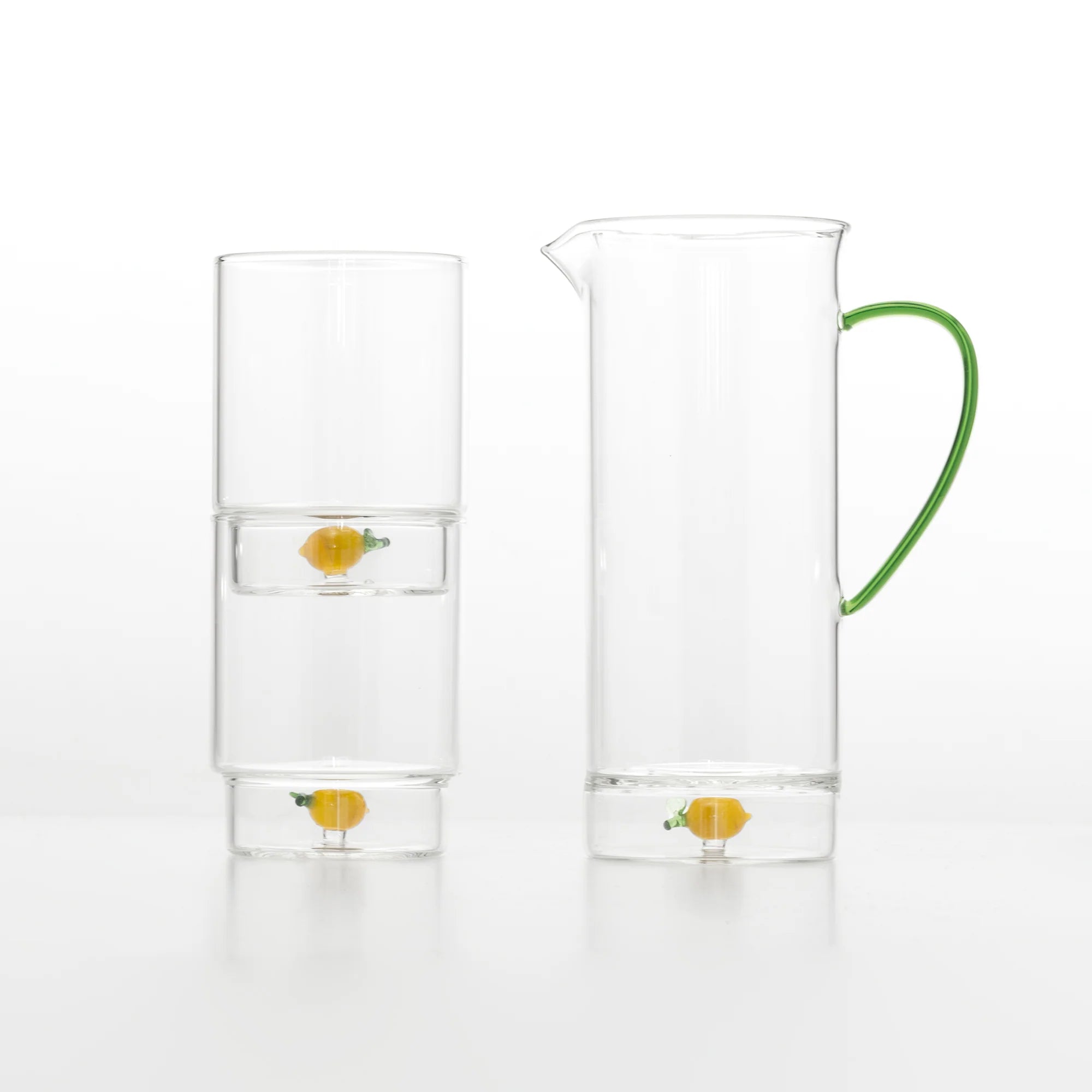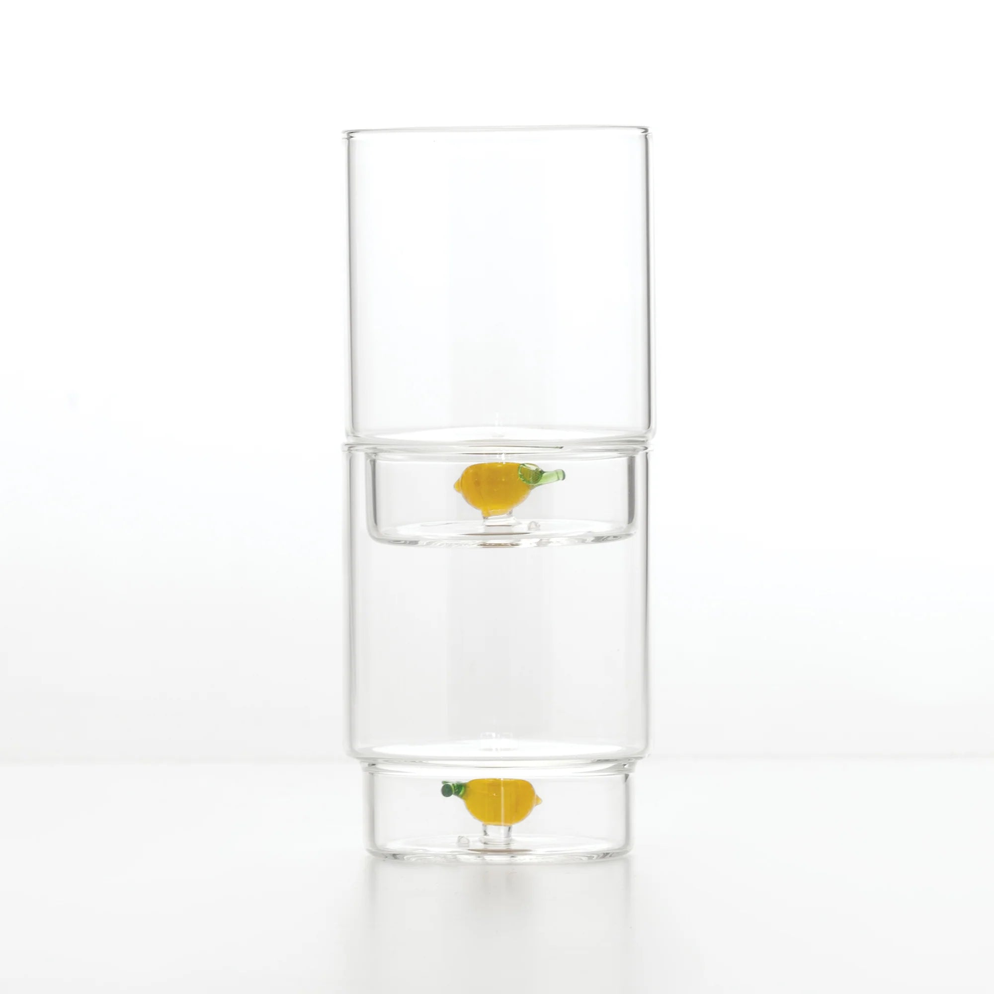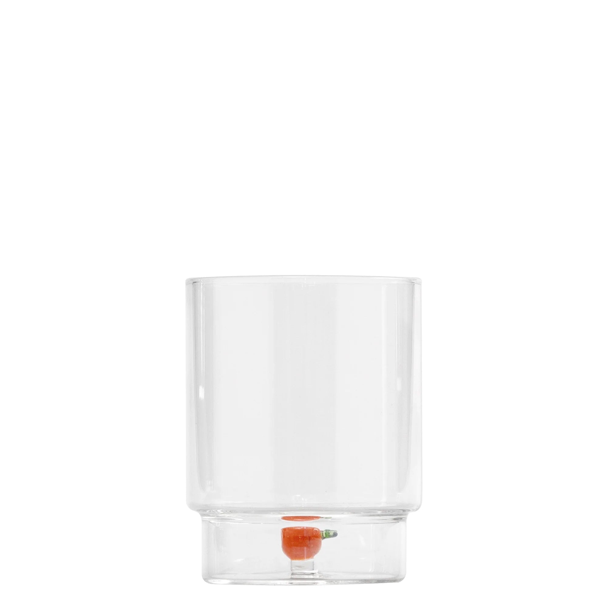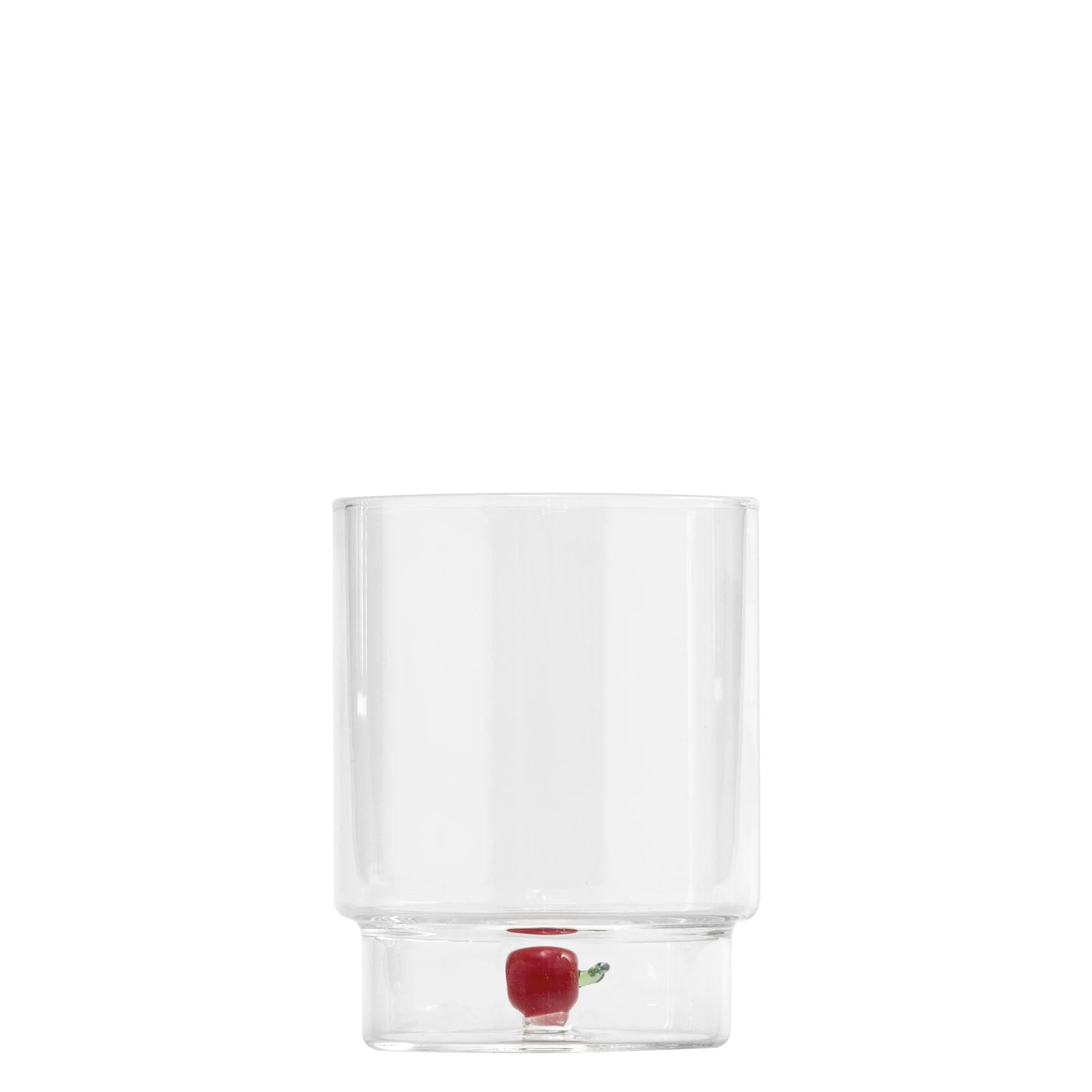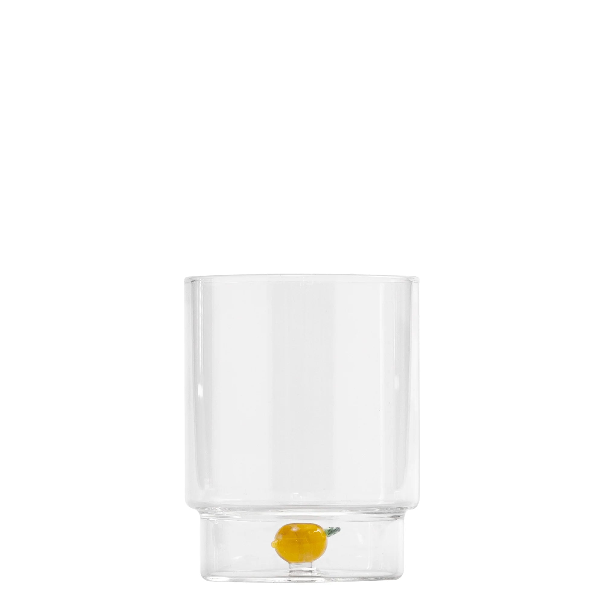 The Zafferano Teca Frutta Tumbler Set of 6 brings playful artistry to everyday dining. Crafted from borosilicate glass with a unique double-bottom design, each piece safely encloses a hand-applied fruit motif, making it both durable and easy to maintain.