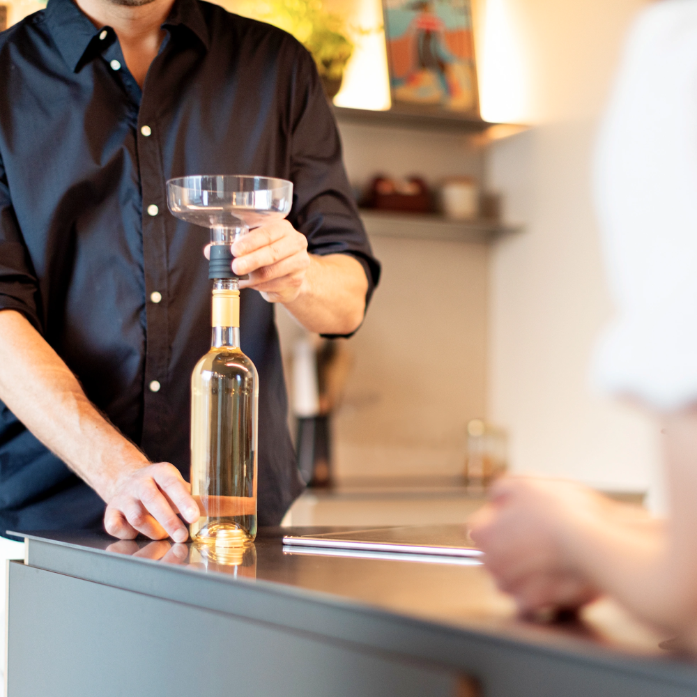 This thoughtfully engineered tool showcases an effortless three-step process that elevates any bottle with precision and ease, inviting a more vibrant and expressive sip each time. Made in Netherlands. Dishwasher safe (except hand pump, which requires hand washing).