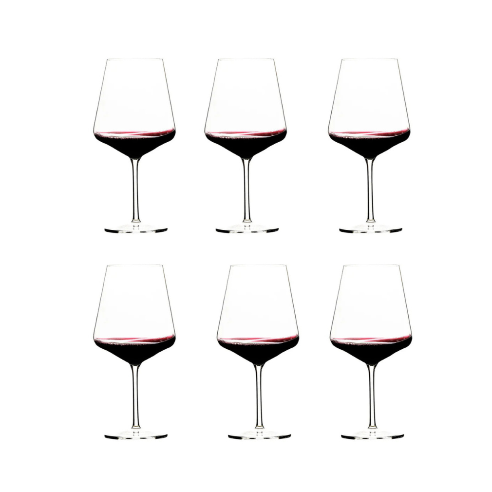Crafted from lead-free ultra-clear crystal. This Alchemy Ariana Burgundy Glass, Set of 6 combines modern, elegant shapes with exceptional durability. Its sheer rim and refined clarity offer the beauty of fine crystal while providing remarkable resistance to breakage, ensuring lasting quality and sophistication for every occasion. 25 oz. capacity. Set of 6.