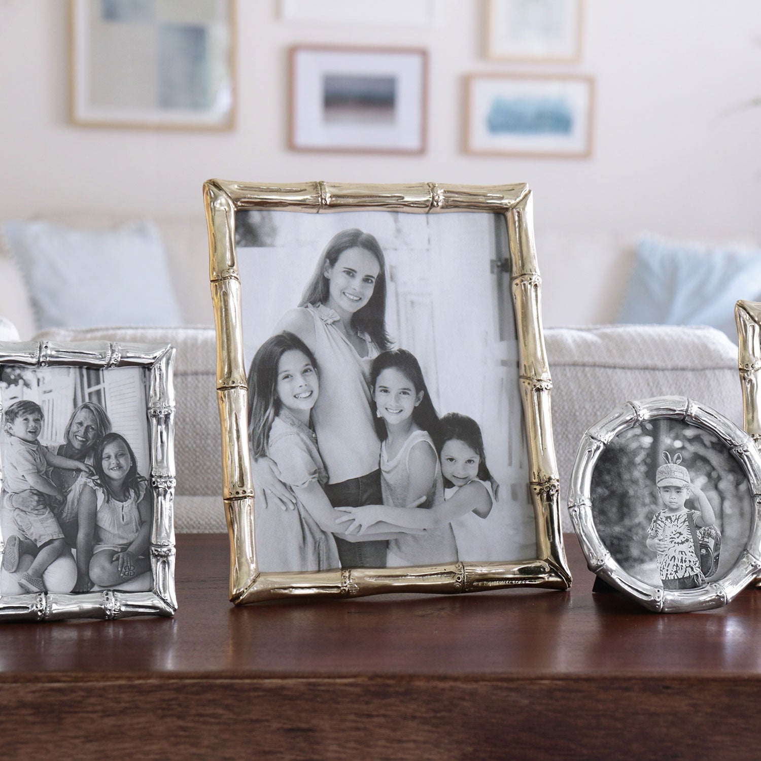 The Beatriz Ball Sierra Modern Bamboo Frame beautifully captures the timeless appeal of bamboo in a contemporary design. With its gleaming bamboo-inspired texture and proprietary gold-tone finish, this frame is perfect for showcasing a photo in either vertical or horizontal orientation.