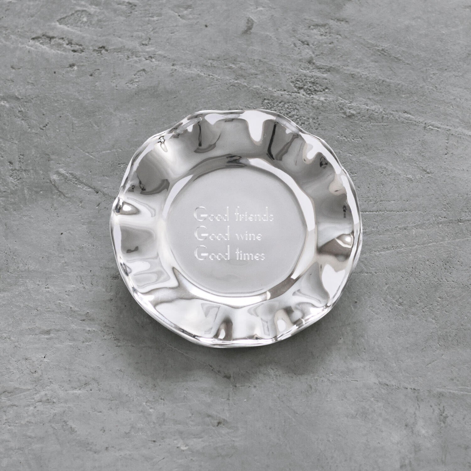 For the good times! The Beatriz Ball Vento Round Wine Plate is an exquisite gift for the wine lover, adding a touch of class to any décor. Engraved with "Good friends, Good wine, Good times," this charming mini plate features a rich, hand-finished surface and a practical size.