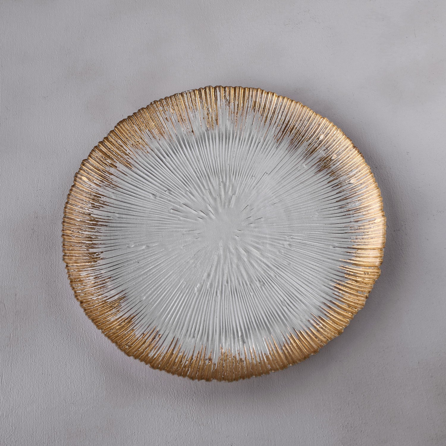 The Glass Radiant Charger Plate from Beatriz Ball offers a brilliant blend of texture, form, and metallic sheen. This versatile design adds a radiant touch to any setting, perfect for serving cakes, cheeses, or other delights. Pair it with the Radiant Small Bowl for a stunning presentation. Opulent and sophisticated, the charger plate showcases the company’s dedication to handmade artistry, adding a touch of elegance to any occasion.