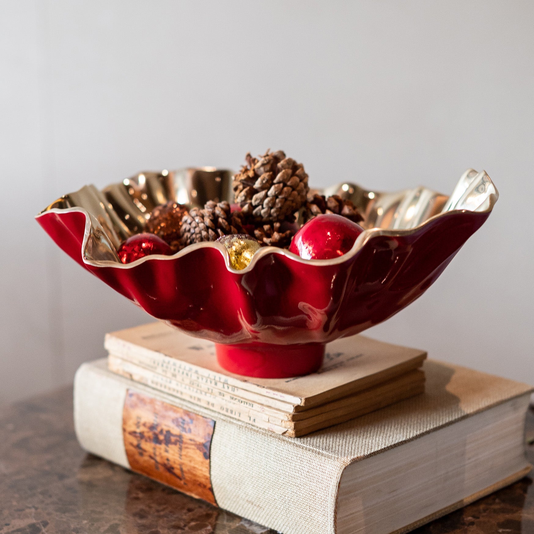 Flowing and organic, the Thanni Bloom Bowl showcases a dynamic, petal-like design that blends beauty, artistry, and functionality. Created in collaboration with Louisiana-based ceramicist Gretchen Murchison, this medium-sized bowl combines a vibrant red exterior with a striking gold interior, making it perfect for celebrating the Holiday Season and beyond in true Thanni Collection style.
