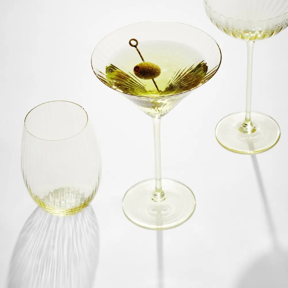 The optic bowls artfully capture the light, playfully reflecting it back, while the elegant stems fit effortlessly in your hands. Honestly, these are glasses that demand to be savored as much as whatever cocktail you're drinking from them.