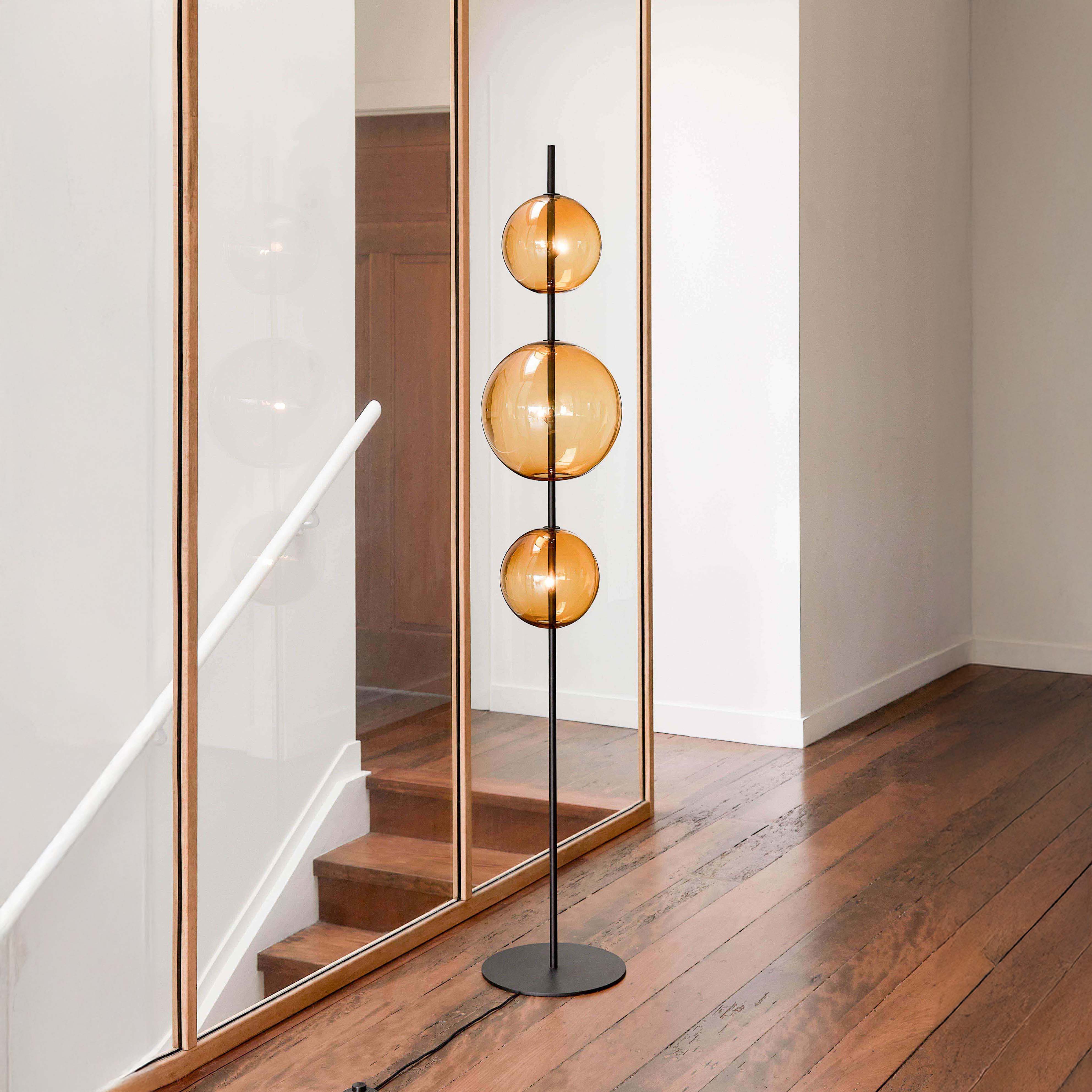 The Citta Point Floor Lamp Modular pairs sculptural simplicity with functional design. Featuring a hand-blown glass shade and a clean black frame, it casts ambient light while offering a customizable silhouette. The modular kit includes components for multiple configurations, with a maximum of four shades per setup. An in-line switch offers easy operation.