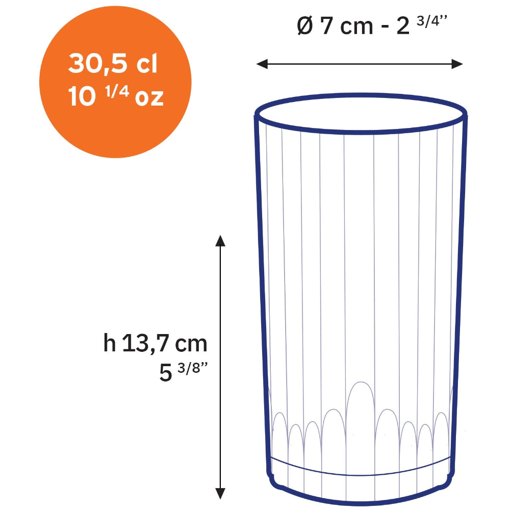 The vintage-inspired design brings timeless sophistication to any home bar or living room. Toughened through a tempering process, these highball glasses are as durable as they are stylish, making them perfect for both everyday use and entertaining. Made in France.