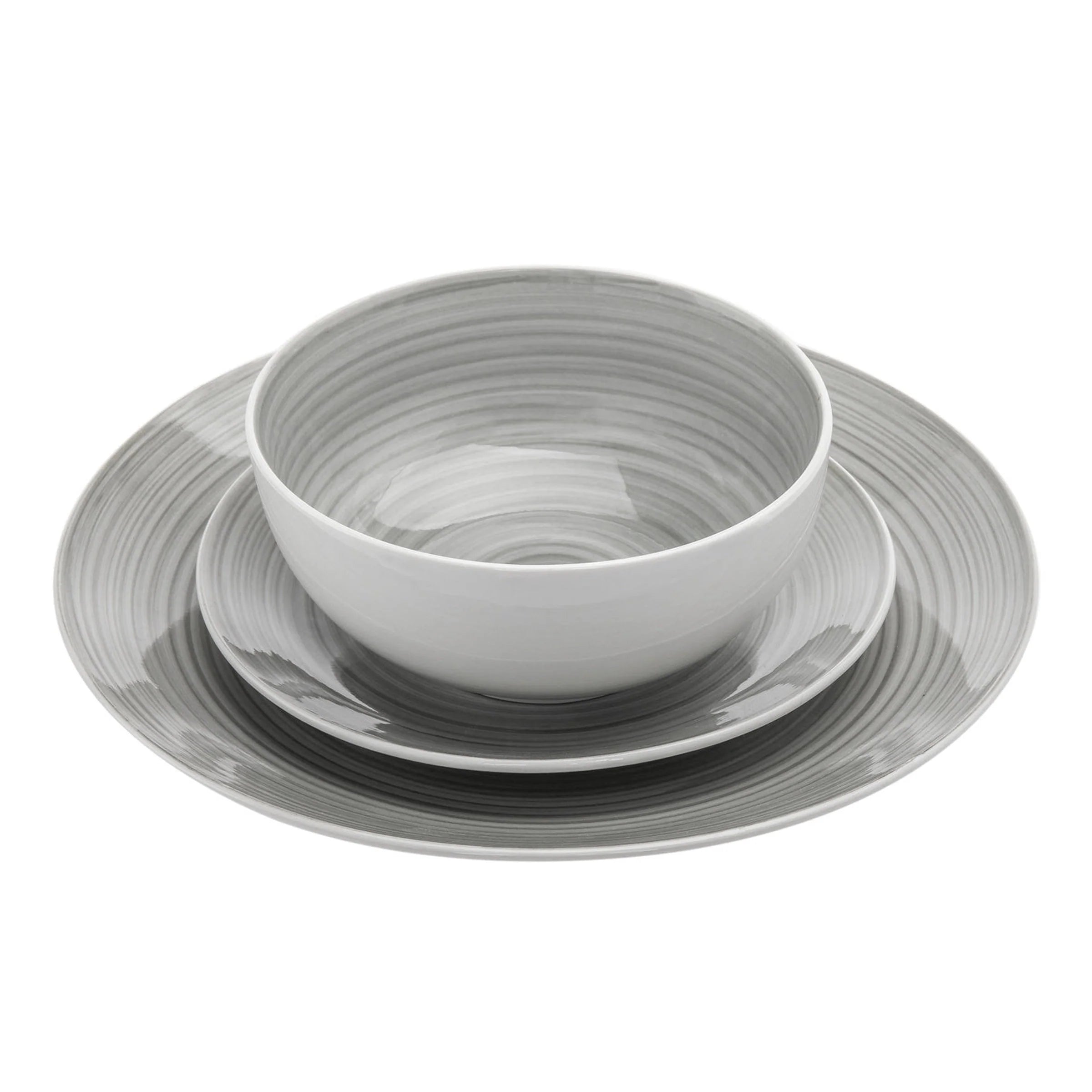 This set includes: 4 Dinner Plates: 10.25"D, 4 Salad Plates: 7.5"D and 4 Cereal Bowls: 6"D; 10 oz. capacity.