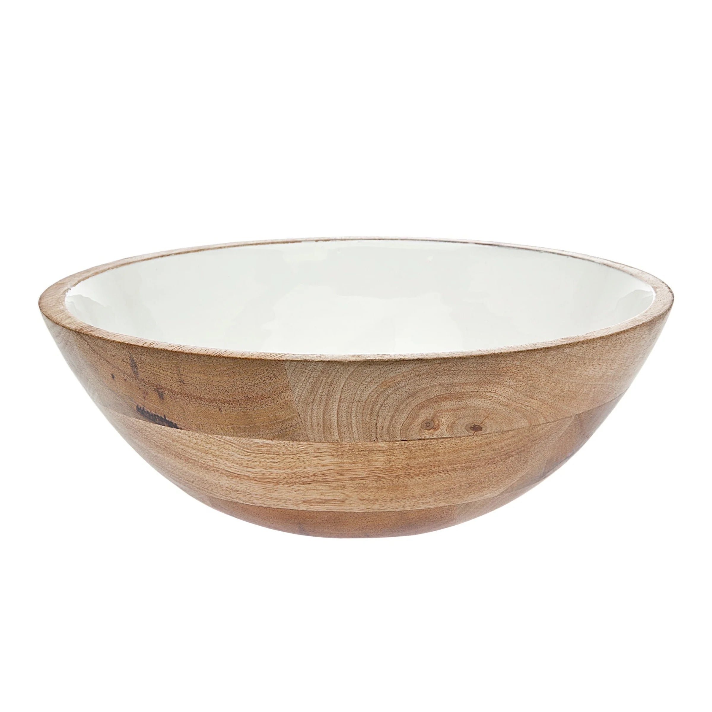 Wood and enamel combine to create a spectacular salad bowl that will make any kitchen feel sophisticated and luxurious. Crafted with the utmost care, this distinguished piece adds a touch of elegance to any meal.