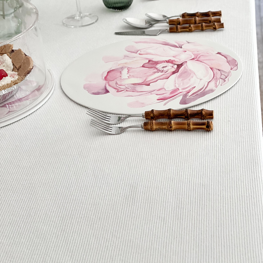 The Kinor Ribbed Fabric Tablecloth brings a refined sense of texture and warmth to the dining table. Crafted from a single continuous piece of fabric for a seamless finish, it features neatly stitched edges that create a polished look.