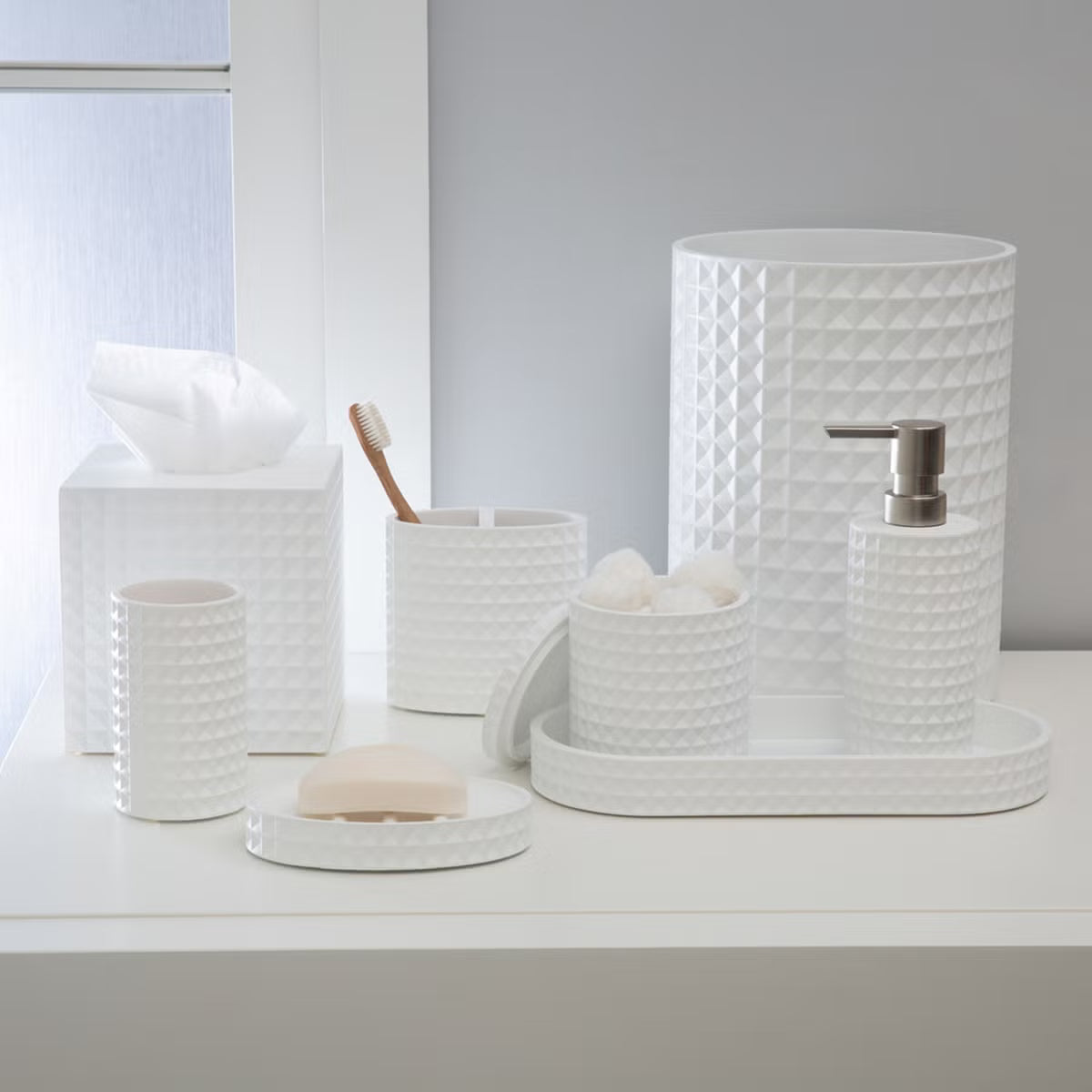 The Braemar resin soap dish features a chic waffle pattern that adds a touch of spa-inspired elegance to your bathroom décor. Crafted from durable resin, its ridged base keeps soap elevated and dry, ensuring a tidy and polished look. Easy to maintain with a simple wipe clean, it combines modern style with practical functionality.