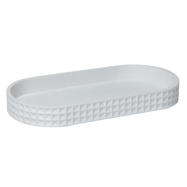The Braemar resin bathroom tray features a refined waffle pattern that brings spa-inspired elegance to your vanity. Crafted from durable resin, it offers a stylish place for bottles, lotion dispensers, or other small essentials. Raised edges keep items neatly contained, while its smooth surface wipes clean easily, combining chic design with everyday functionality.