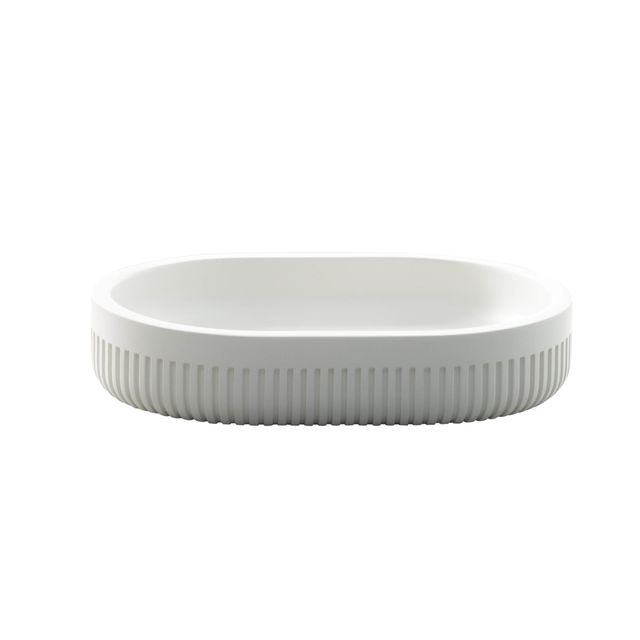 Sophisticated and functional, the Moda At Home Corbett Resin Soap Dish adds sculptural elegance to your bathroom essentials. Crafted from durable resin with a distinctive grooved texture, its rounded shape fits neatly on your countertop while keeping your soap fresh, dry, and organized.