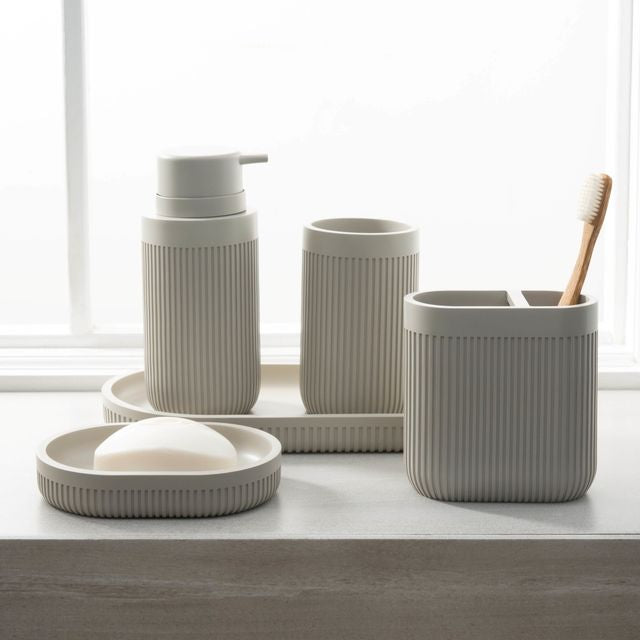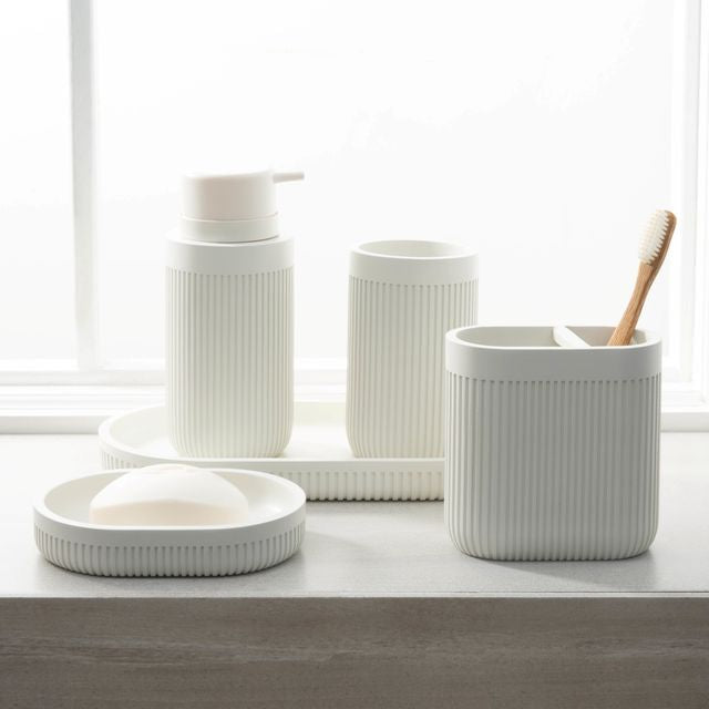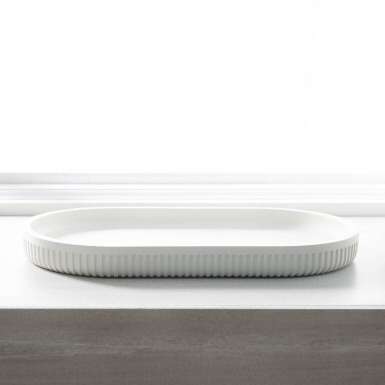 Sophisticated and functional, the Moda At Home Corbett Resin Tray adds sculptural elegance to your space. Crafted from durable resin with a distinctive grooved texture, its gently raised edges keep items securely in place. Perfect for organizing toiletries, jewelry, or accessories, this versatile tray fits effortlessly on a vanity, bathroom counter, or nightstand, blending style with practicality.