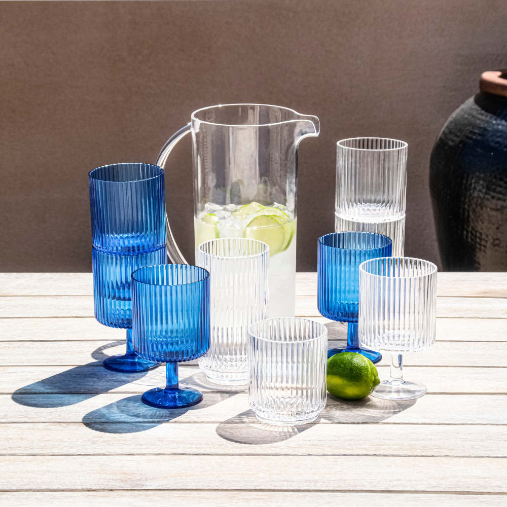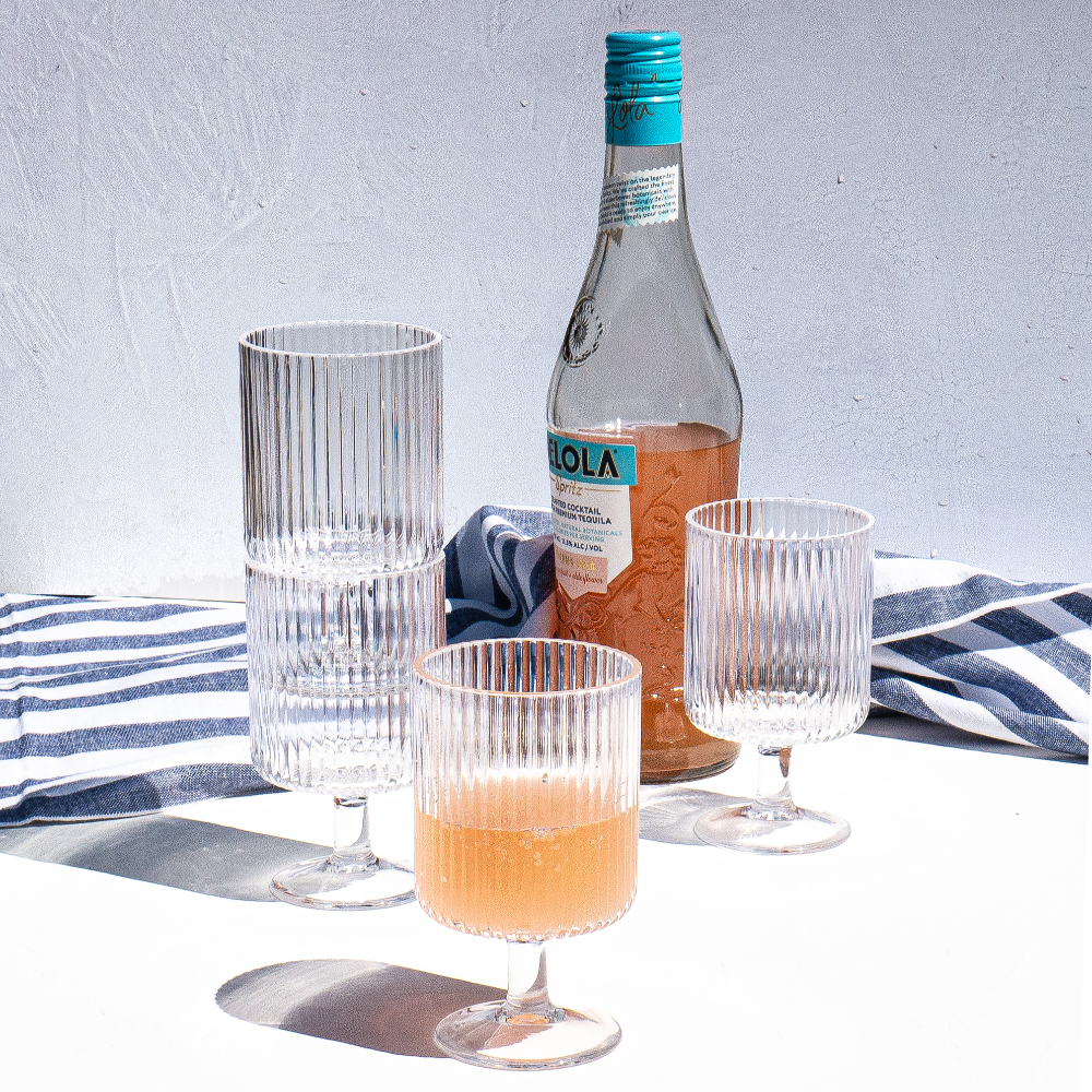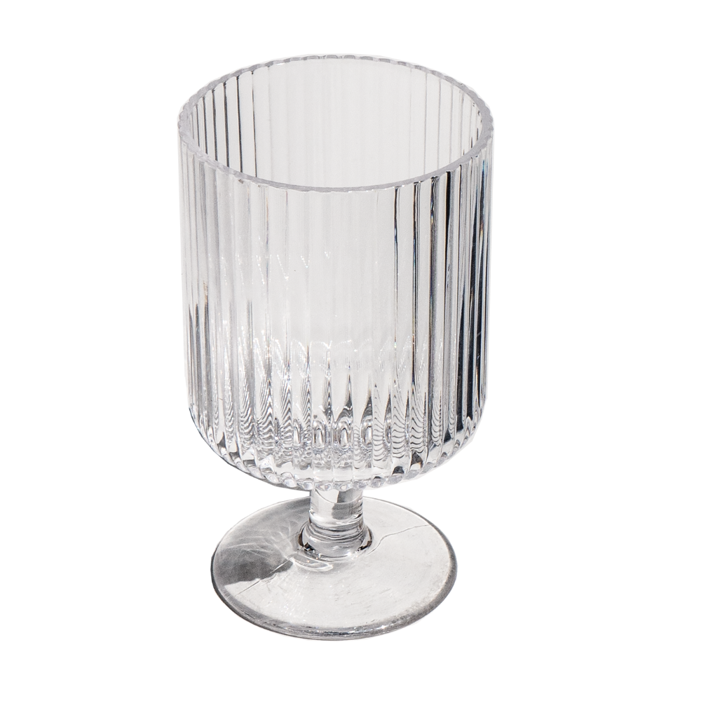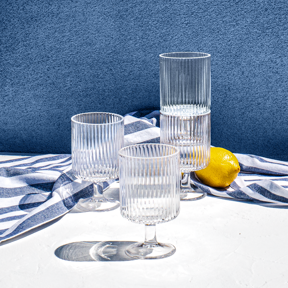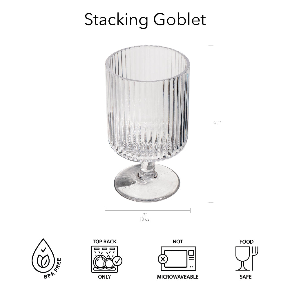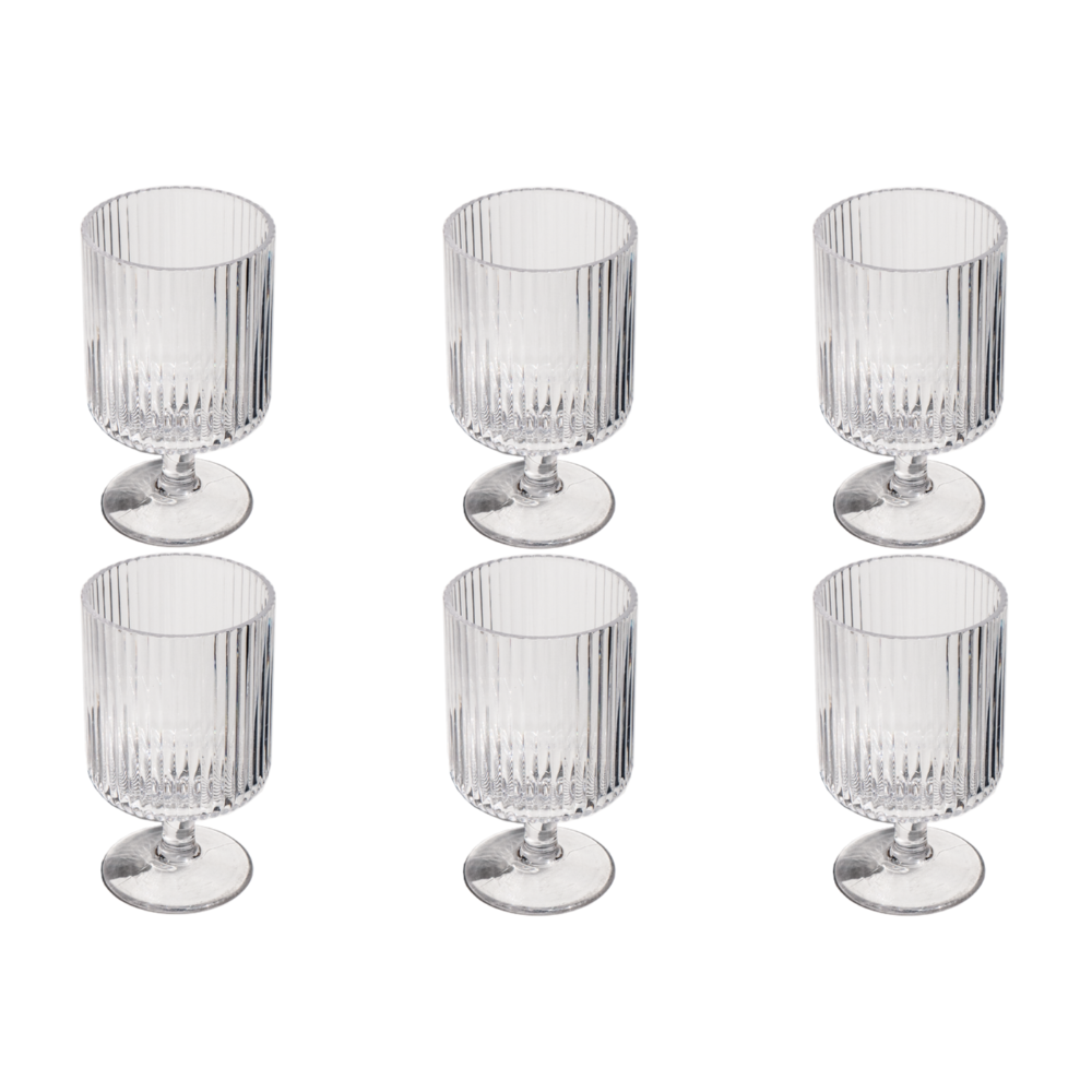 The Tarhong Mesa Mini Clear Stacking Goblet Drinking Glass. Set of 6 features a striking vertical rib texture, offering a modern yet timeless design. Perfect for adding a touch of elegance to any occasion, these mini goblets are both functional and stylish. Designed for versatility, the Mesa collection is ideal for both casual gatherings and more formal events, offering a sophisticated presentation for every drink. The set's stacking feature adds convenience for storage while maintaining its refined aesthetic.