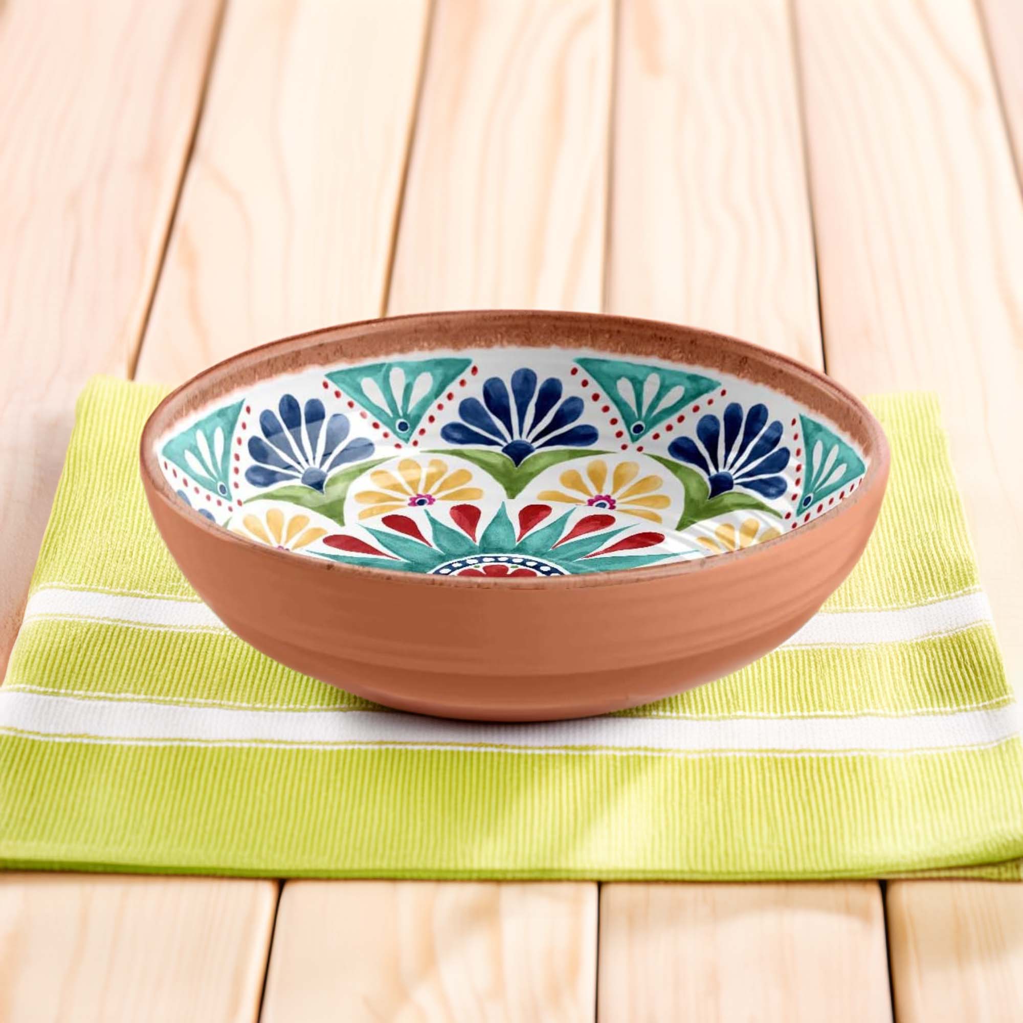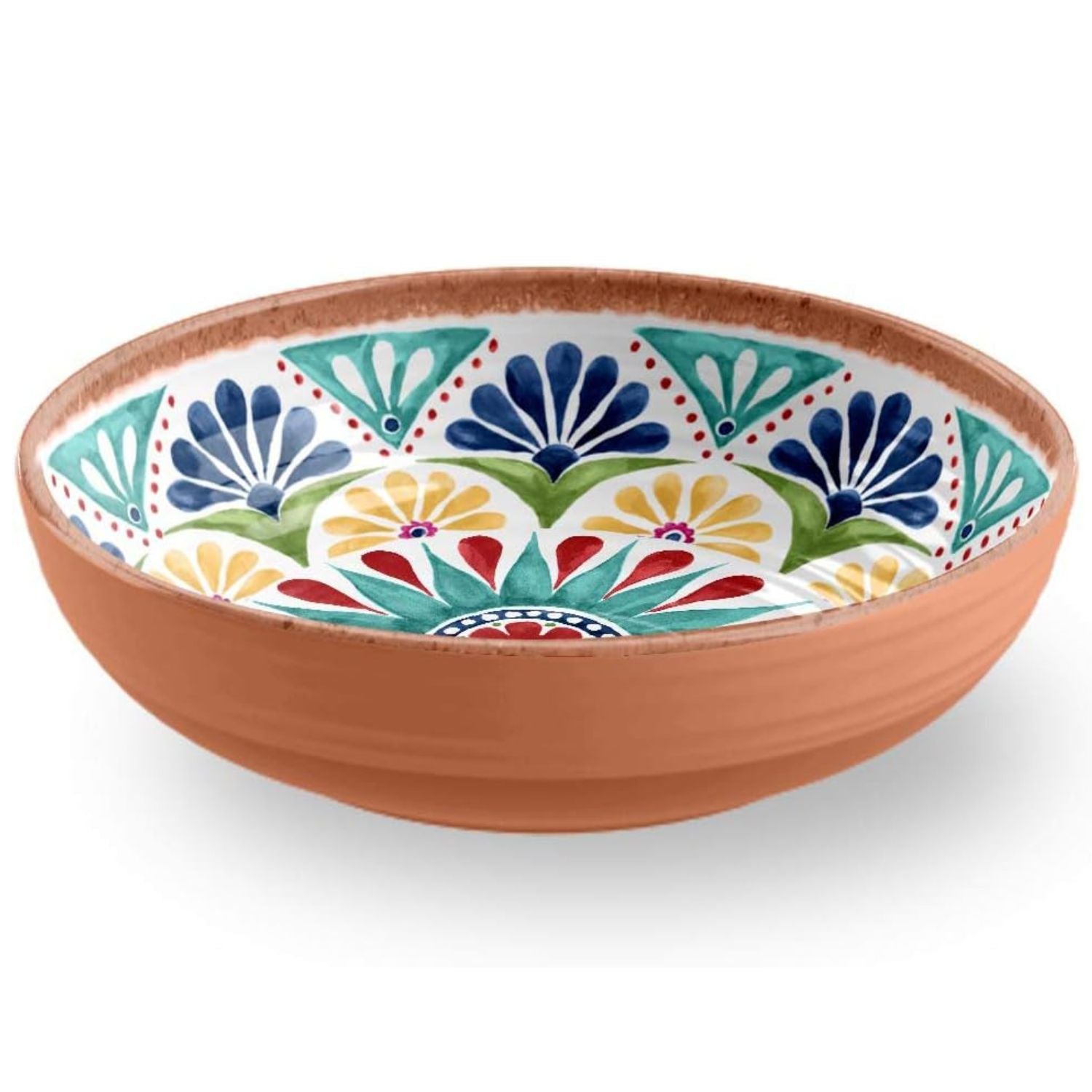 - Set Composition: Set of 6 bowls, each with an 8" diameter, in the Rio Medallion pattern with a natural clay-colored rim